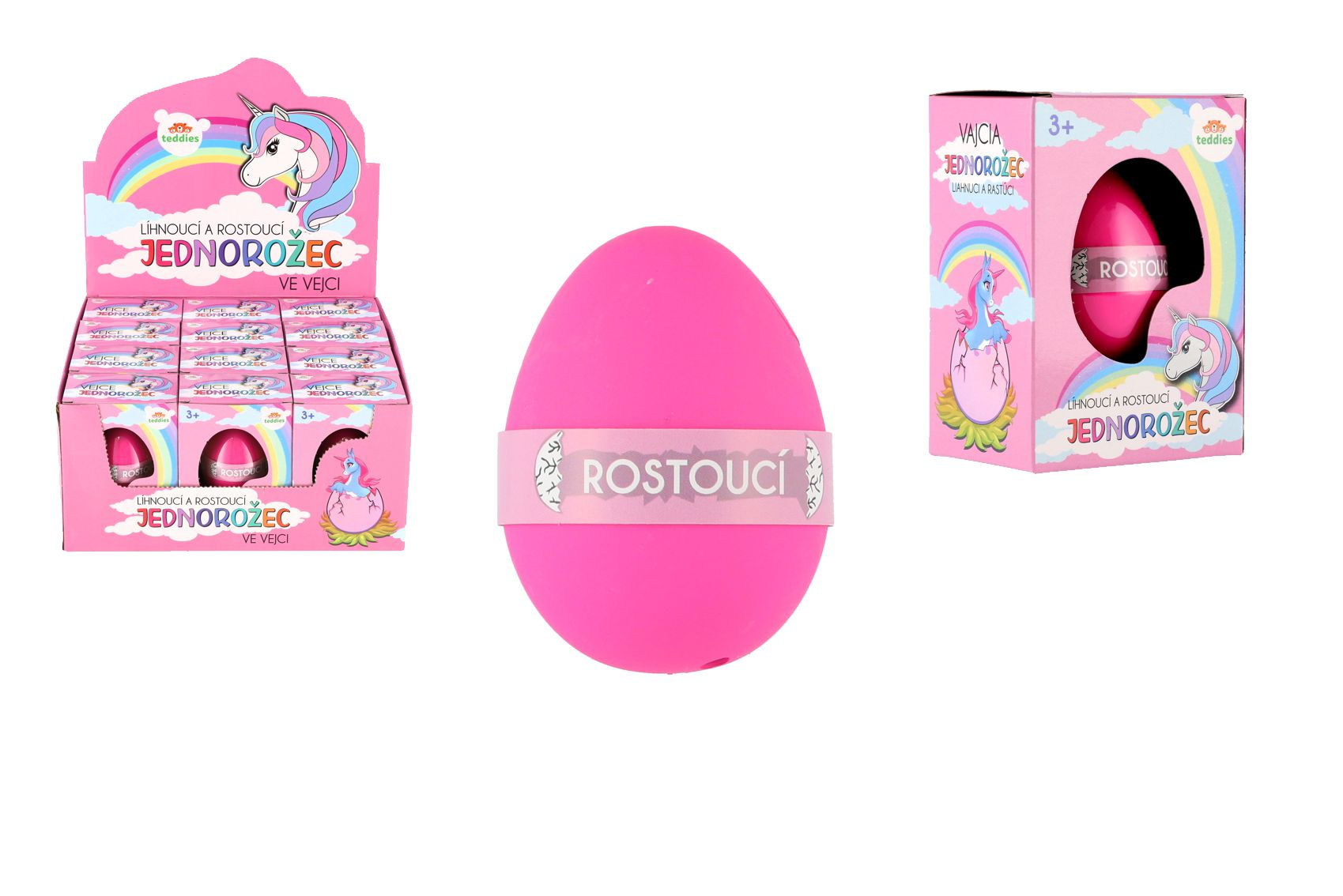 Perfektní dárek pro obdivovatelky jednorožců a také pro milovnice překvapení. Ve vejci je ukryto překvapení ve formě jednorožce. Aby se ale z vajíčka vyklubal, je nutné ho ponořit do misky s vlažnou vodou. Přibližně za 24 - 48 hodin skořápka popraská a jednorožec se začne klubat. Postupně tak mohou děti pozorovat, jak se z vajíčka líhne. Jak bude vypadat oblíbený jednorožec se dozvíte za cca 72 hodin. Rozměr krabičky: 7,5 x 10,5 x 5 cm Vhodné pro děti od 3 let