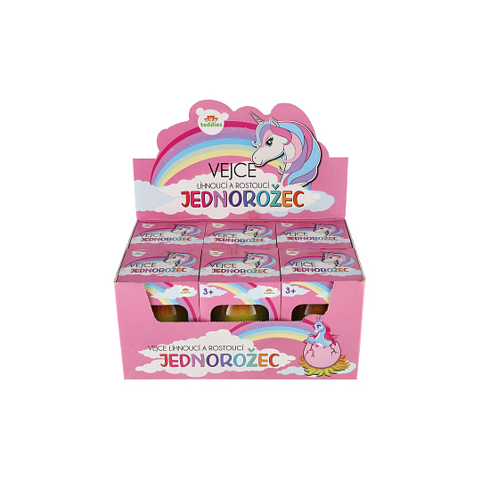 Vejce líhnoucí a rostoucí jednorožec plast 7x10cm v krabičce 9,5x13cm 6ks v boxu