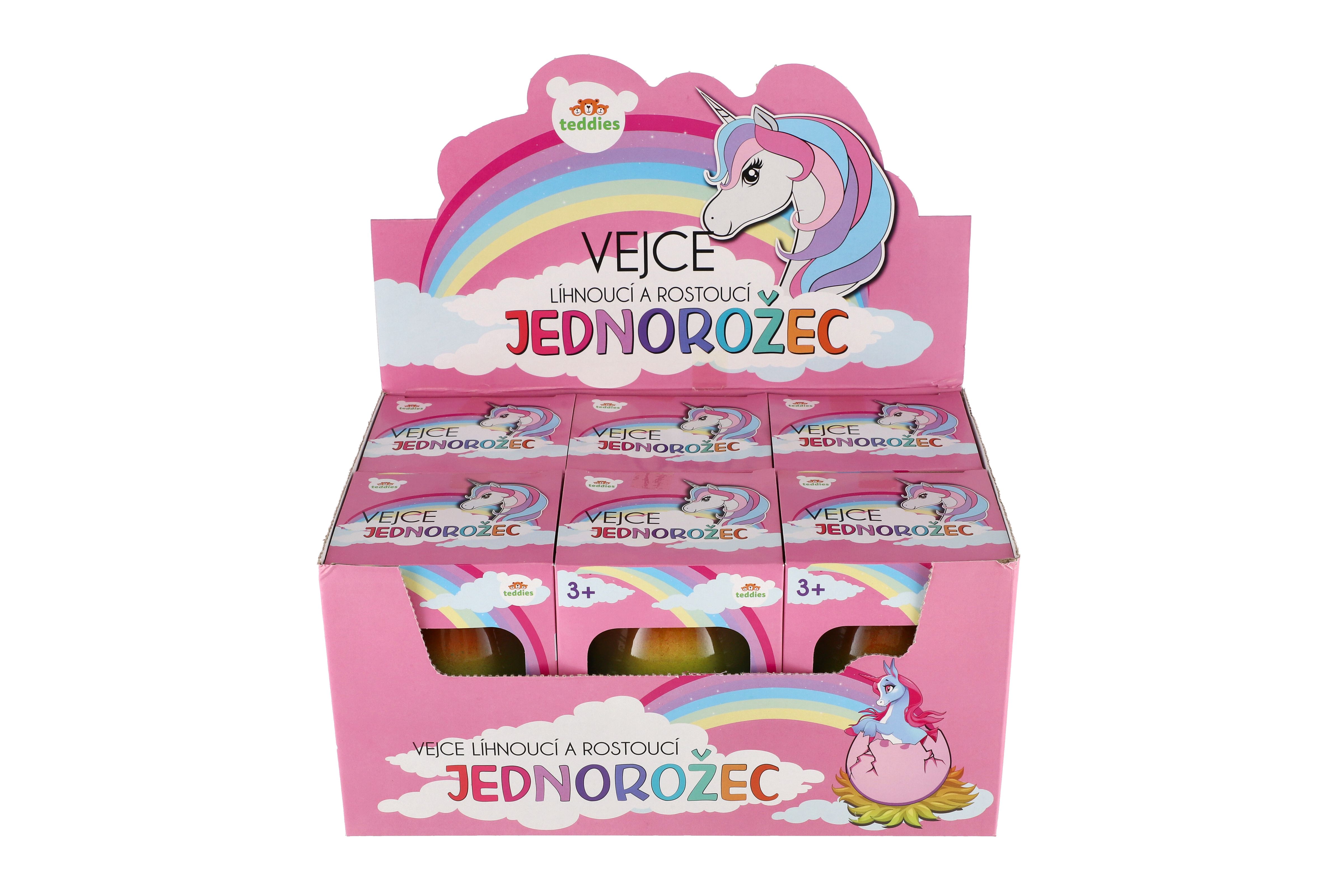 Vejce líhnoucí a rostoucí jednorožec plast 7x10cm v krabičce 9,5x13cm 6ks v boxu