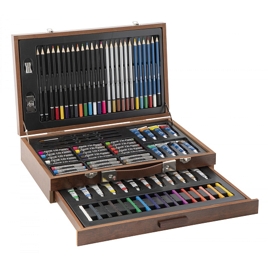 Tento kufřík není jen sbírkou uměleckých potřeb, je to inspirace zabalená do krásného dřevěného balení. Otevírá dveře do světa barev, tvarů a nekonečných možností tvoření. Je to investice do radosti z umění a do rozvoje vlastní kreativity.