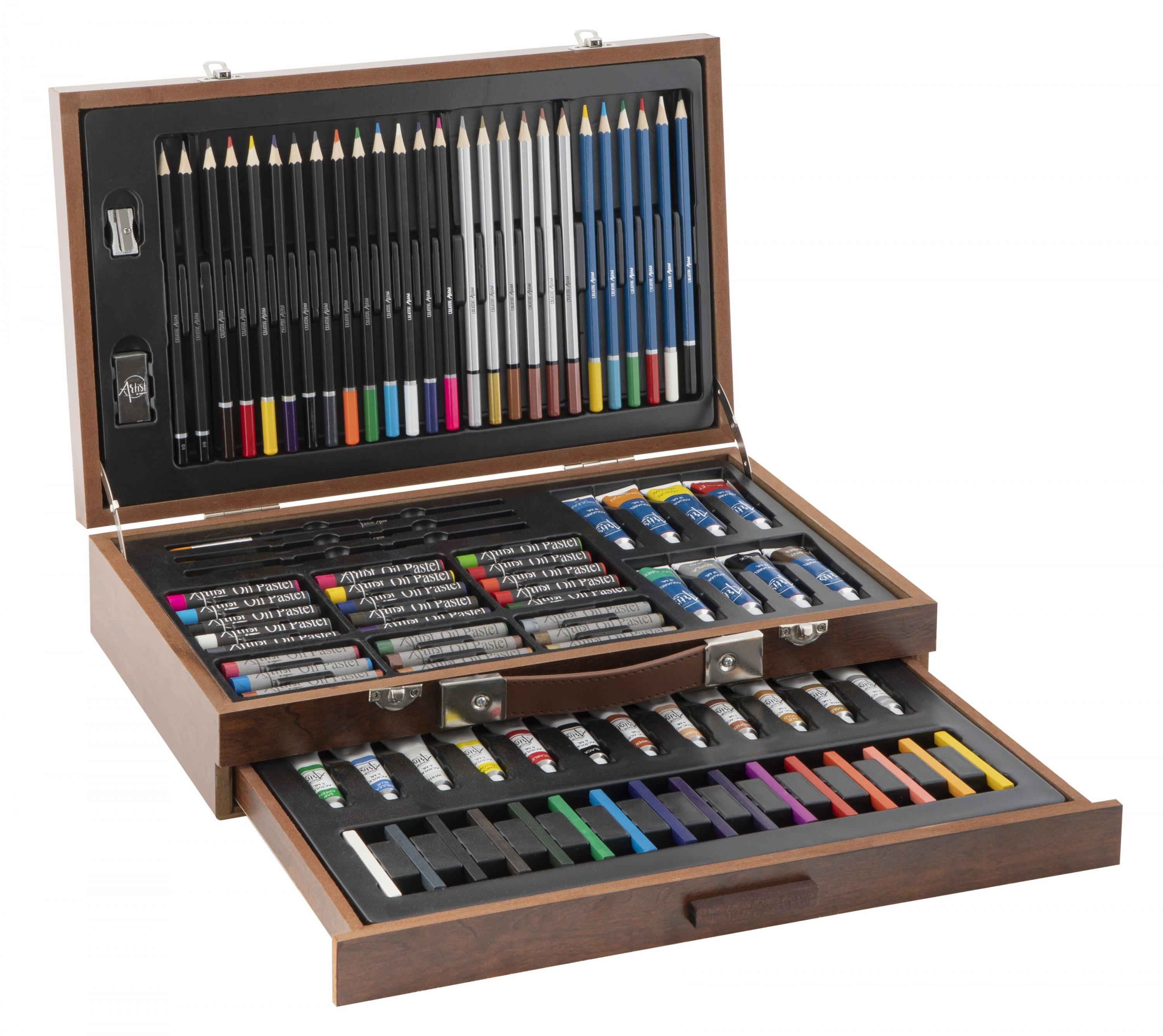 Tento kufřík není jen sbírkou uměleckých potřeb, je to inspirace zabalená do krásného dřevěného balení. Otevírá dveře do světa barev, tvarů a nekonečných možností tvoření. Je to investice do radosti z umění a do rozvoje vlastní kreativity.