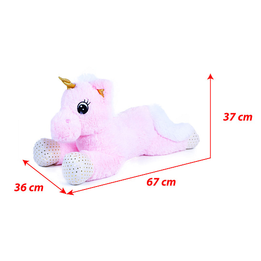 Nádherný plyšový jednorožec ve velikosti 70 cm je vyroben z kvalitní jemné plyše. Jednorožec je v růžové barvě, má zlatý roh i tlapky, hříva a ocas jsou sněhově bílé. Ideální dárek pro malé i velké! Vhodné pro děti od 0 let.