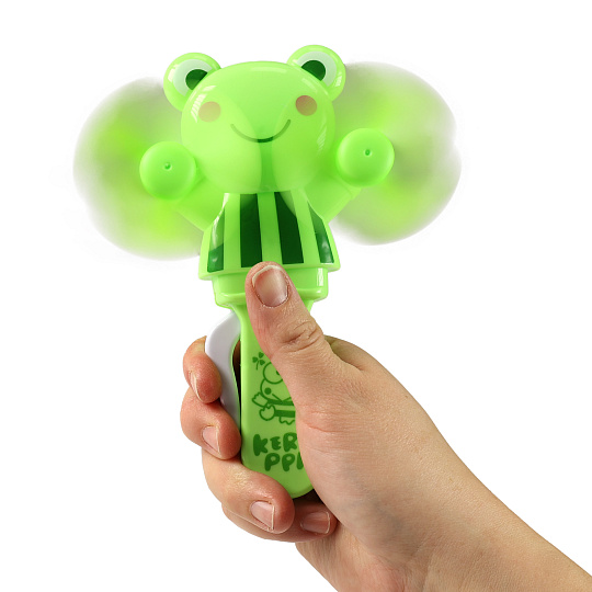 Zábavný ruční větráček/ventilátor z plastu nejen pro děti. Vrtulka se roztočí mačkáním páčky. Jednoduchý a účinný způsob jak zchladit sebe nebo své kamarády v horkých letních dnech. Mechanický pohon - na setrvačník.