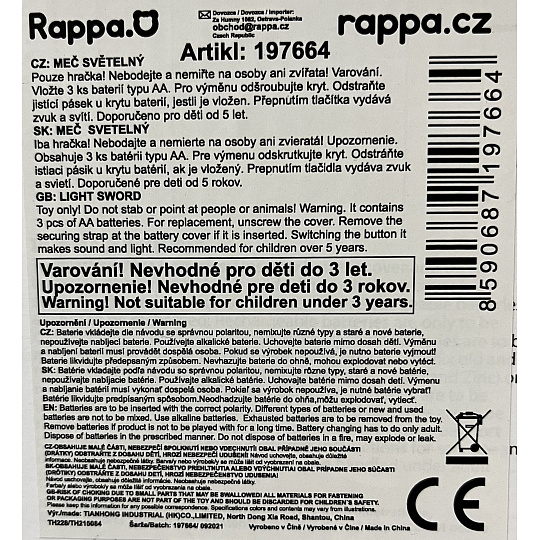 Popadni vesmírný meč a boj může začít! S pomocí světelného meče se můžeš ubránit všem prohnaným vetřelcům z vesmíru. Plastový meč o délce 60 cm navíc disponuje světelnými a zvukovými efekty. Vyžaduje 3 ks baterií typu AA, které nejsou součástí balení.