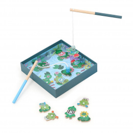 Rybaření s rybičkami? To umí každý. Buďte originální a naučte se rybařit s žabkami od ilustrátorky Michelle Carlsund. K dispozici je celkem 12 roztomilých žab, každá v jiném tvaru i barevném designu. Chyťte je všechny! Každá žabka má na zadní straně různý počet teček, které označují body. Při hře tedy nezáleží na tom, kolik žab hráč vytáhne, ale nakonec se na již vytažených žabkách spočítají body a vyhrává ten, kdo má bodů více. Hra stimuluje kognitivní vývoj vašeho dítka. Rozvíjí koordinaci ruka-oko a jemnou motoriku. Podporuje také smyslové a vzdělávací učení. Žabky jsou uloženy v krabičce, která se otevřením přemění na herní základnu. Hra obsahuje: 12 dřevěných magnetických žab, 2 dřevěné pruty s magnetem a 1 herní krabičku/základnu Hlavní vlastnosti:•klasická hra v inovativním designu•inspirováno Montessori hračkami•rozvíjí soustředění a trpělivost•napomáhá učení počítání a zapamatování si•učí o barvách a tvarech•úložná krabička, která se přemění na herní základnu•vhodné od 2 let