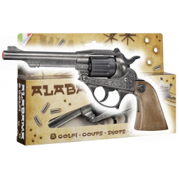 Kapslíková pistole kovbojská, 8miranná, kovová. Vhodné pro děti od 6 let.