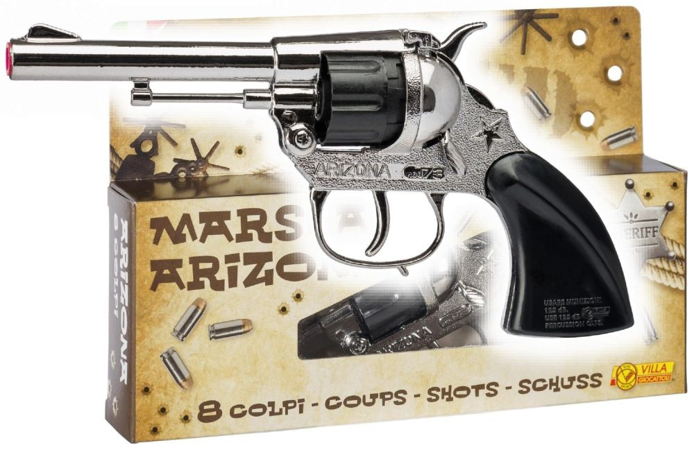 Kapslíková pistole kovbojská, 8miranná, kovová. Vhodné pro děti od 6 let.