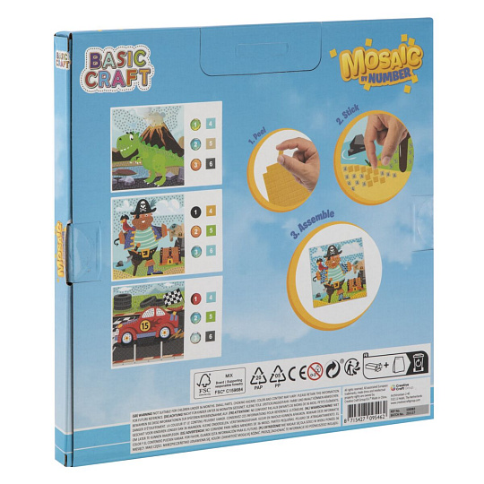 Kreativní set mozaika podle čísel 22x22 cm, nalep správně přiložené samolepící prvky podle čísel a vytvoř si krásný obrázek, sada obsahuje 3 různé obrazy/předlohy