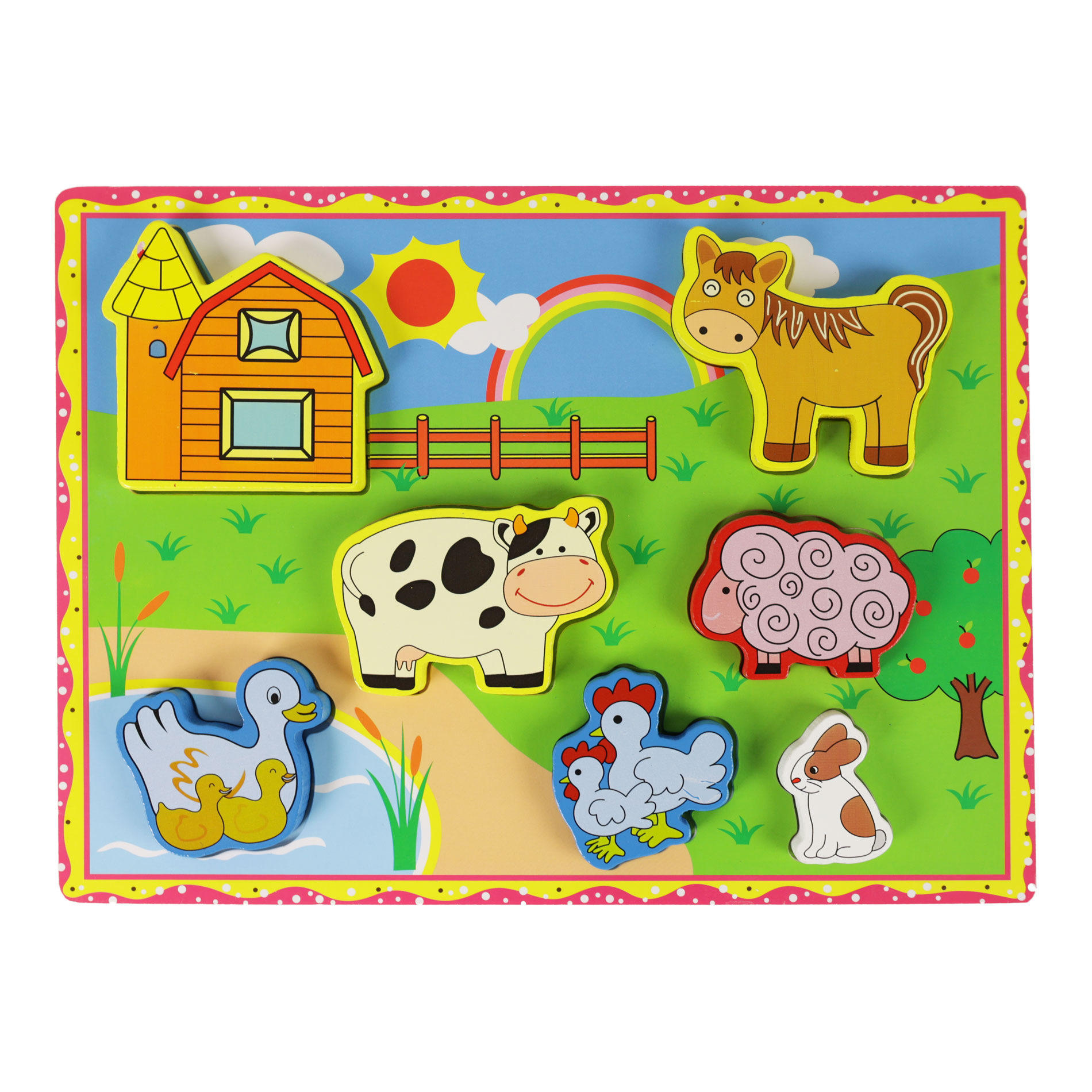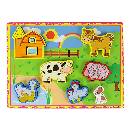 Dřevěná 3D vkládačka je určena pro ty nejmenší. S touto praktickou hrou s motivy zvířátek z farmy si užiješ zaručeně spostu zábavy! Do příslušných otvorů vkládáš správné tvary a přitom rozvíjíš své motorické schopnosti. Paráda!