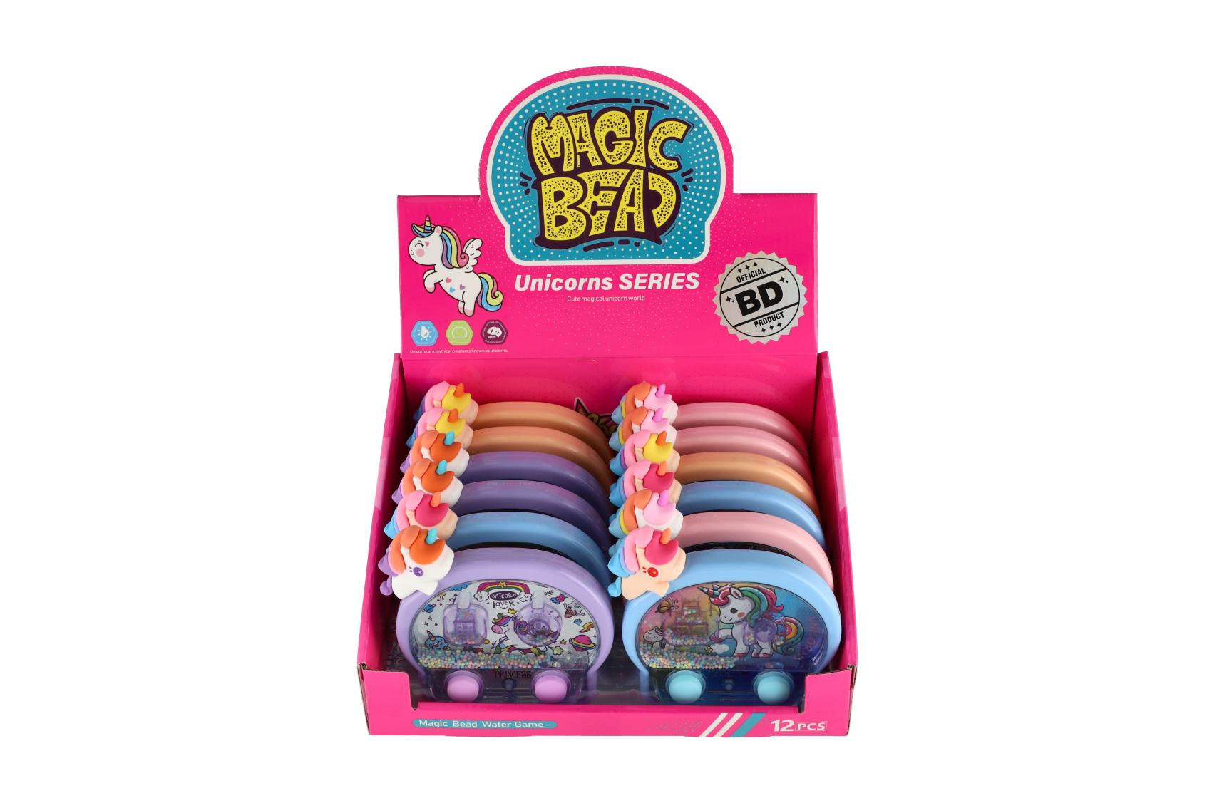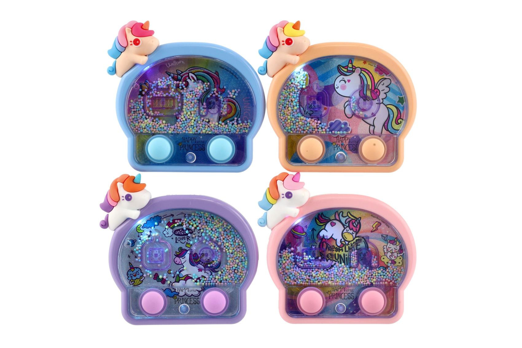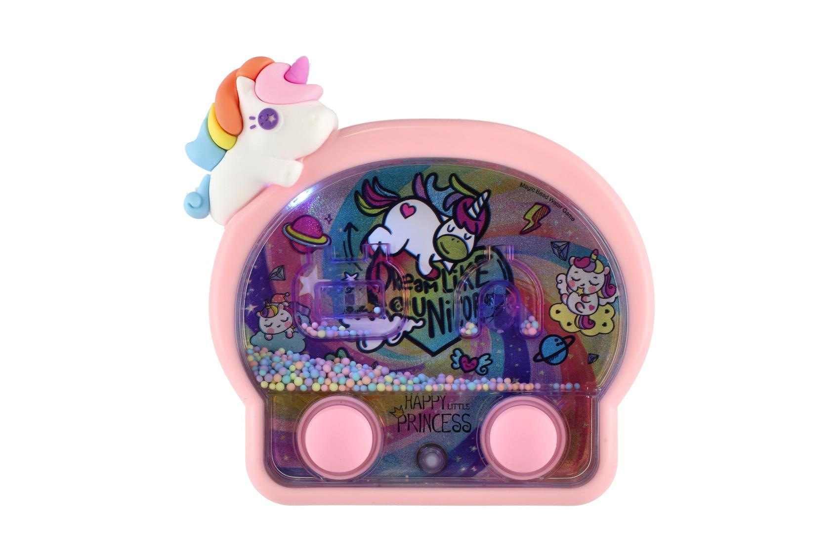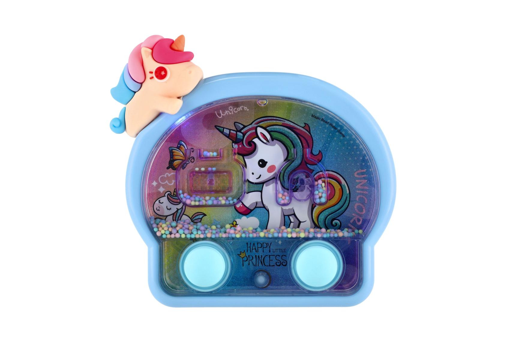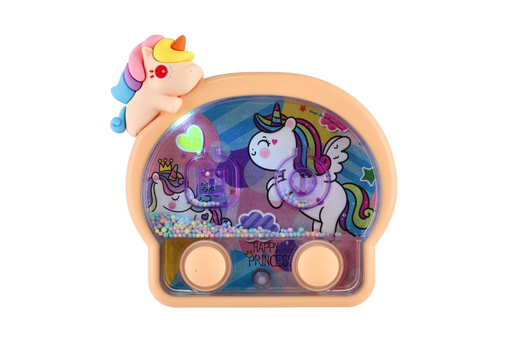 Kouzelná vodní hra s motivem roztomilých jednorožců potěší každou malou princeznu. Stačí stisknout tlačítka, rozpohybovat barevné kuličky a trefovat je do připravených terčíků. Jednoduchý princip zabaví děti na dlouhou dobu, podporuje soustředění, trpělivost i jemnou motoriku. Tato varianta navíc svítí, takže hra vypadá ještě efektněji – světélka krásně podtrhují kouzelný jednorožčí motiv.