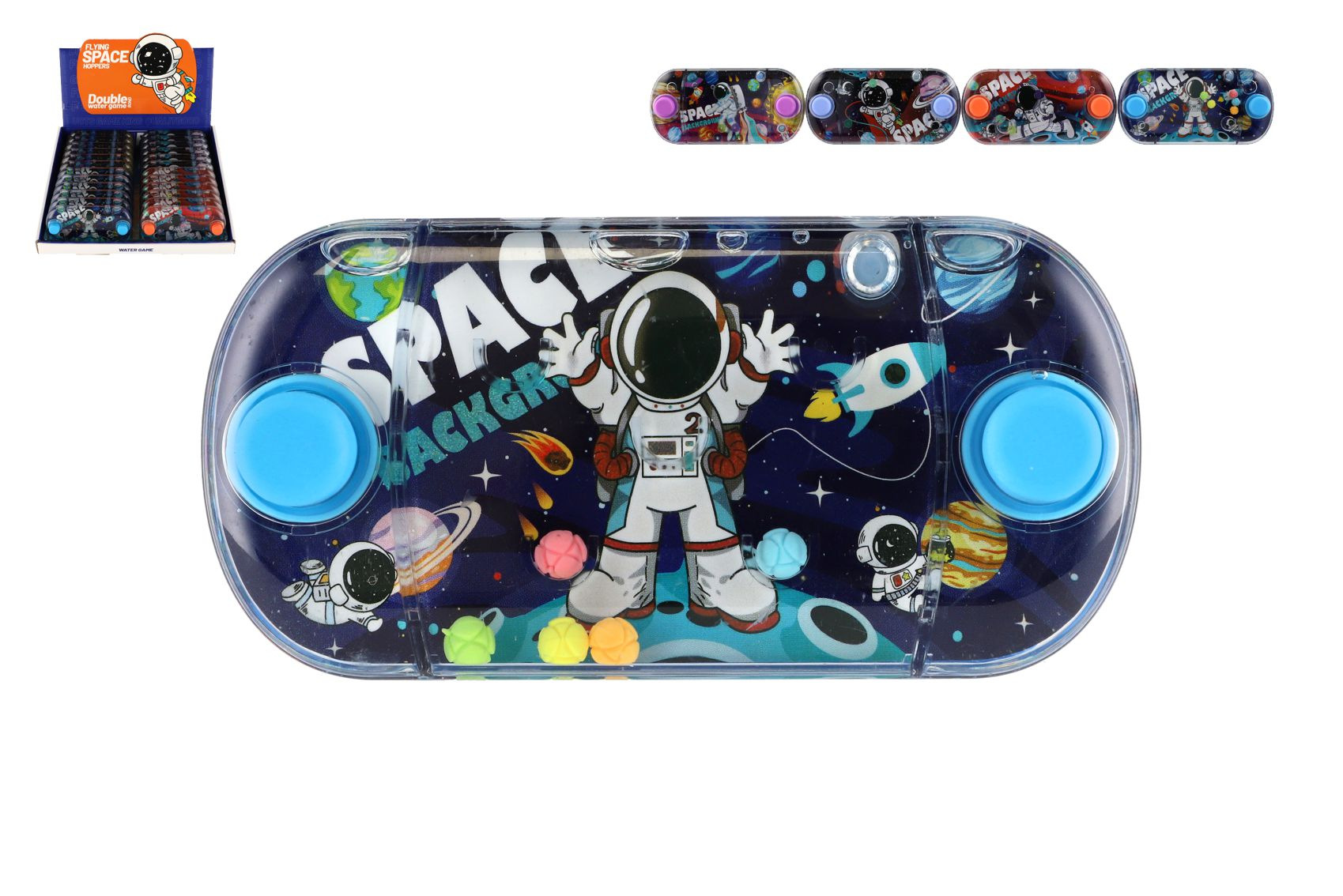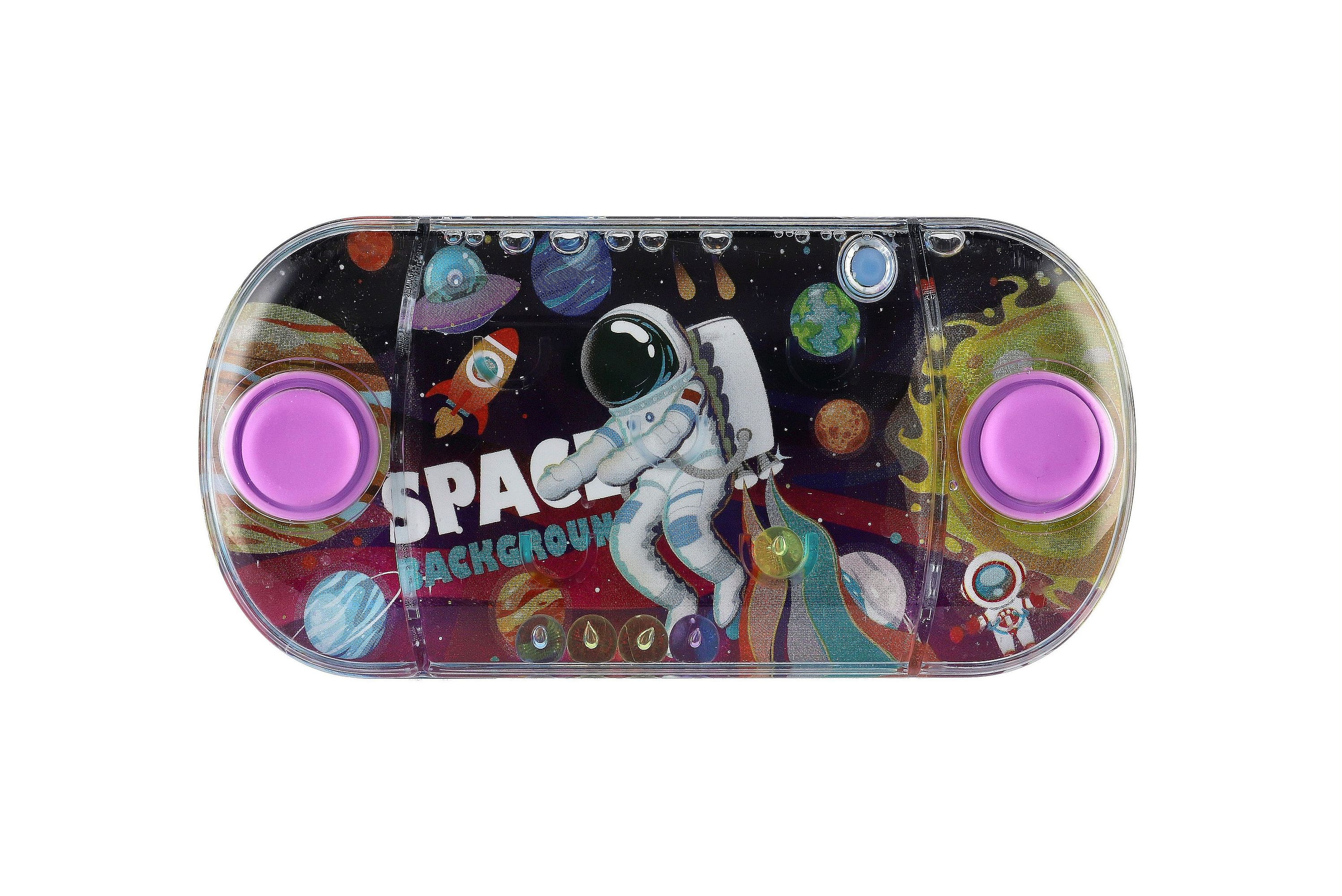 Tradiční dětská hra, která neomrzí. Hlavolam do kapsy, se kterým mohou děti vyzkoušet svoji trpělivost. Princip hry je jednoduchý. Mají za úkol dostat kuličky vznášející se ve vodě a to pouhým stiskem tlačítka do důlků. Tato hra podporuje soustředění a trpělivost. Vybrat si můžete z několika motivů vesmíru. Rozměry výrobku 12 x 6 x 2 cm. Vhodné pro děti od 3 let.