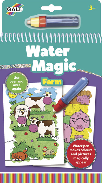 Chceš objevit zvířátka, která žijí na farmě? Naplň pero vodou a začni kreslit perem po lehce viditelném obrázku. Každým tvým tahem se začnou objevovat části obrázku víc a víc až nakonec uvidíš celý obrázek v zářivých barvách. Jakmile obrázky uschnou, opět se stanou neviditelnými a ty je můžeš znovu objevovat. Obrázky si můžeš vzít třeba na dlouhou cestu autem a kreslit znovu a znovu.