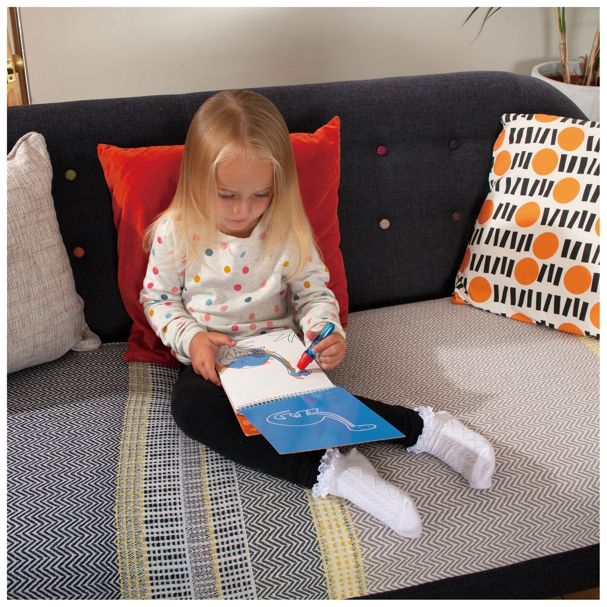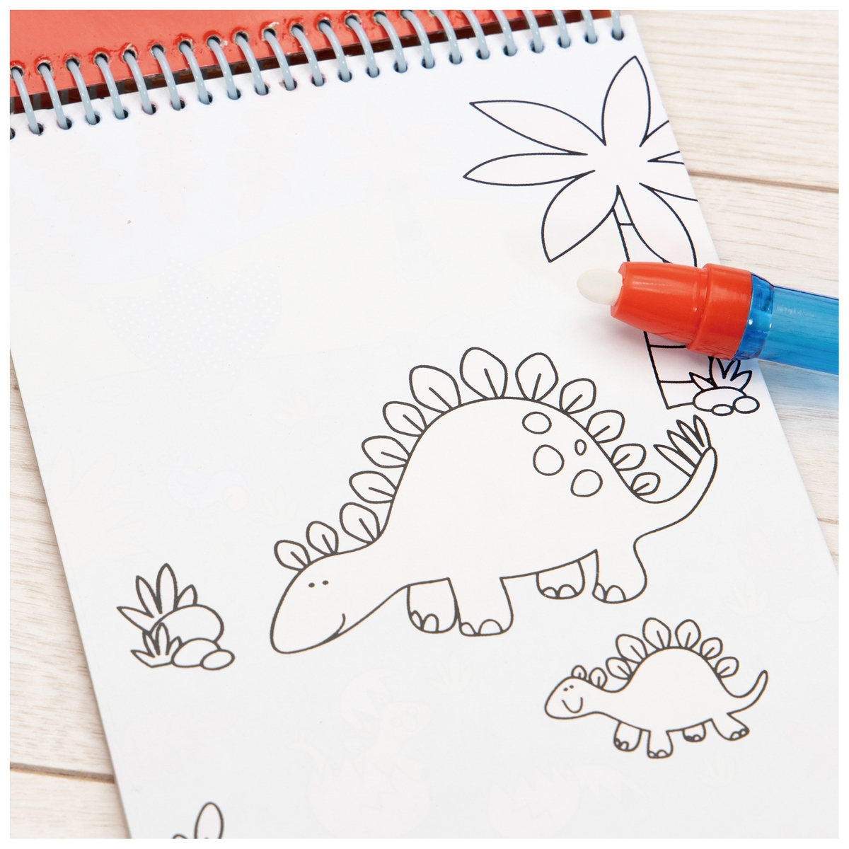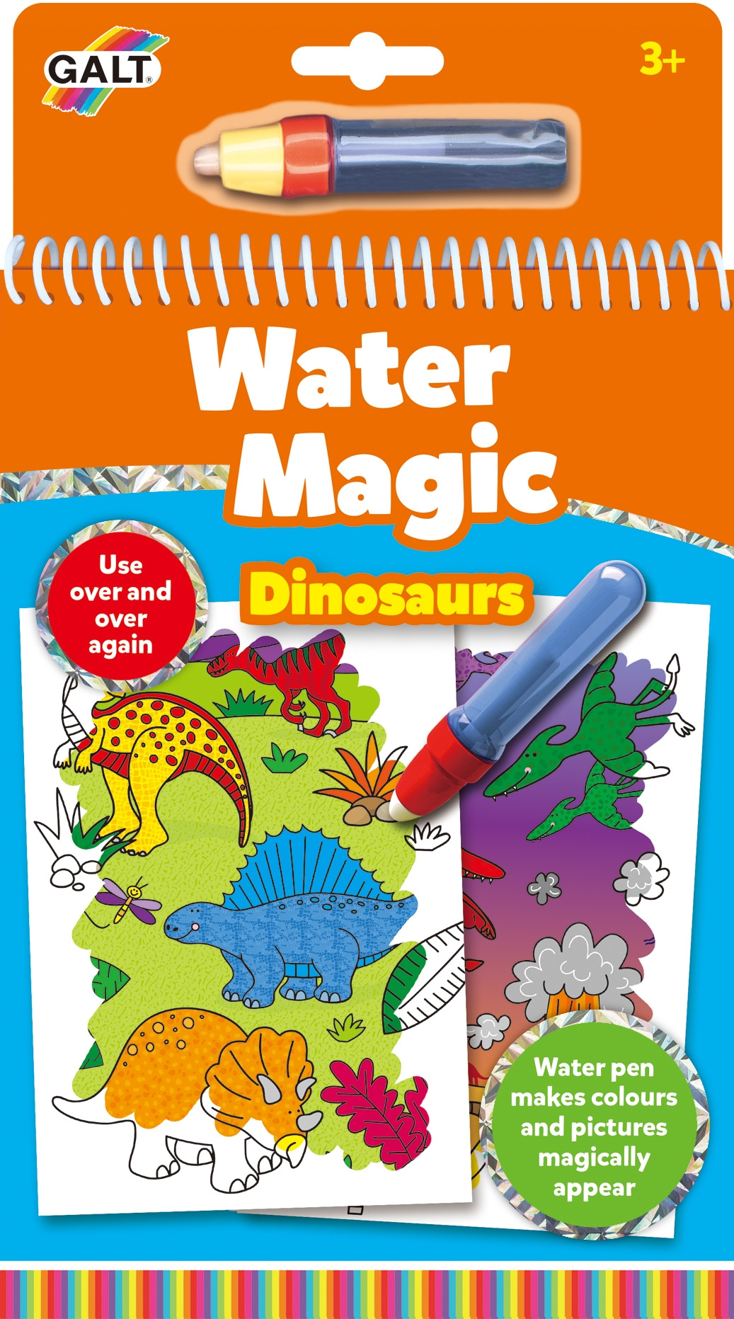 Sada kouzelných omalovánek Vodní magie pro nejmenší s opakovaně použitelnými obrázkovými deskami na pevném očku a novým velkým vodním perem. Tyto zábavné omalovánky obsahují opakovaně použitelné obrázky, které se vybarví vodním perem. Naplníme pero vodou a jeho pomocí dítě odkrývá schované obrázky dinosauřích mláďat. Obrázky se jako zázrakem vybarví a barvy pak zase zmizí, takže je děti mohou vybarvovat pořád dokola. Ideální pro cestování.