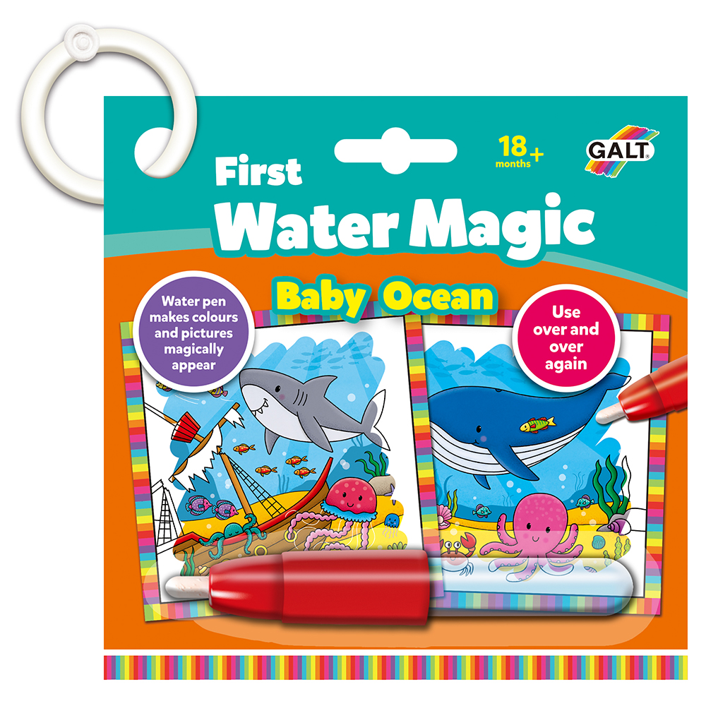 Vodní magie pro nejmenší s opakovaně použitelnými obrázkovými deskami na pevném očku a novým velkým vodním perem. Tyto zábavné omalovánky obsahují opakovaně použitelné obrázky, které se vybarví vodním perem.
