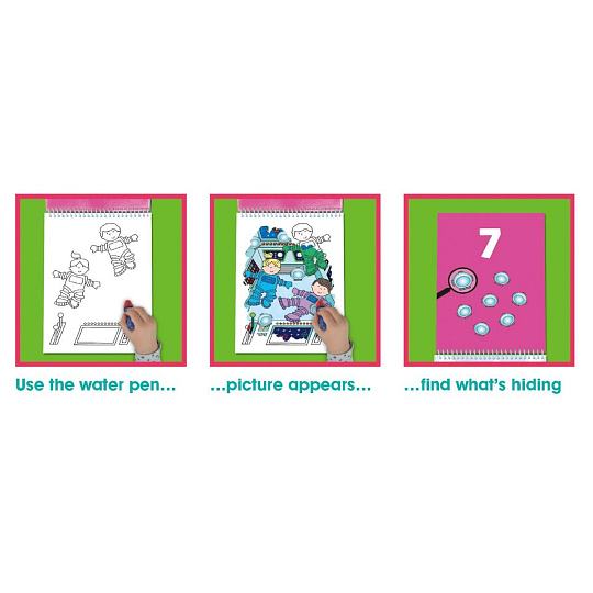 Vychází ze hry „Who‘s Hiding?“ (Na schovávanou). Tyto omalovánky obsahují ještě další aktivitu. Pomocí vodního pera dítě může odkrýt obrázek se zvířátky a předměty. Obrázky se vybarví a pak zase zmizí, a tak pořád dokola. Ideální pro cestování.