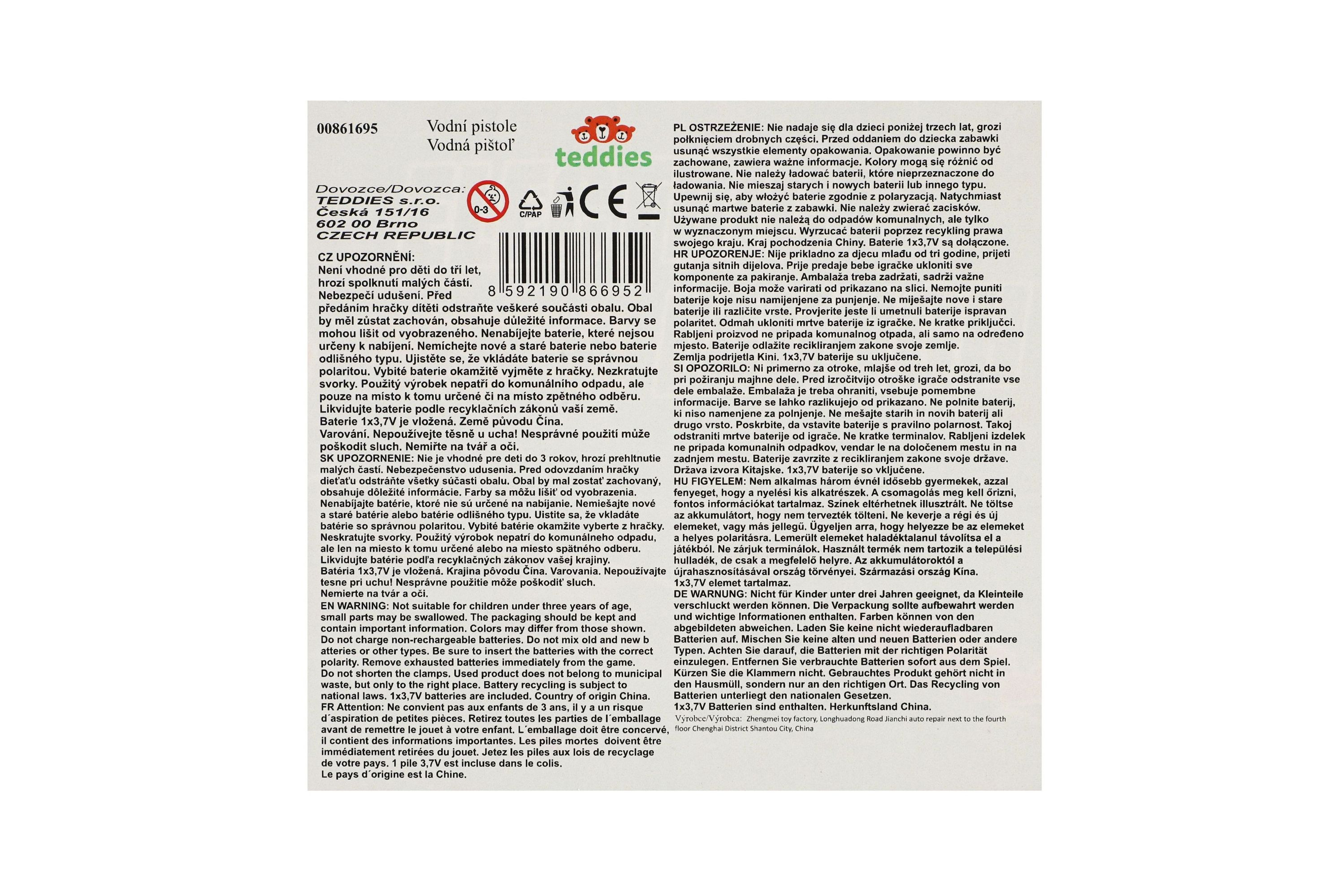 Užijte si nekonečnou zábavu s vodní pistolí, která přináší zcela nový rozměr vodních her! Pistole se zásobníkem zaručuje dostatečný dosah a kapacitu pro dlouhé bitvy. Díky bateriovému napájení pistole nabízí skvělý zážitek z každého zmáčknutí spouště. Připravte se na akční a osvěžující léto plné smíchu a radosti! Baterie 1x 3,7V je součástí výrobku. Velikost pistole: 40 cm Rozměr balení: 43 x 22 x 8 cm Vhodné pro děti od 3 let