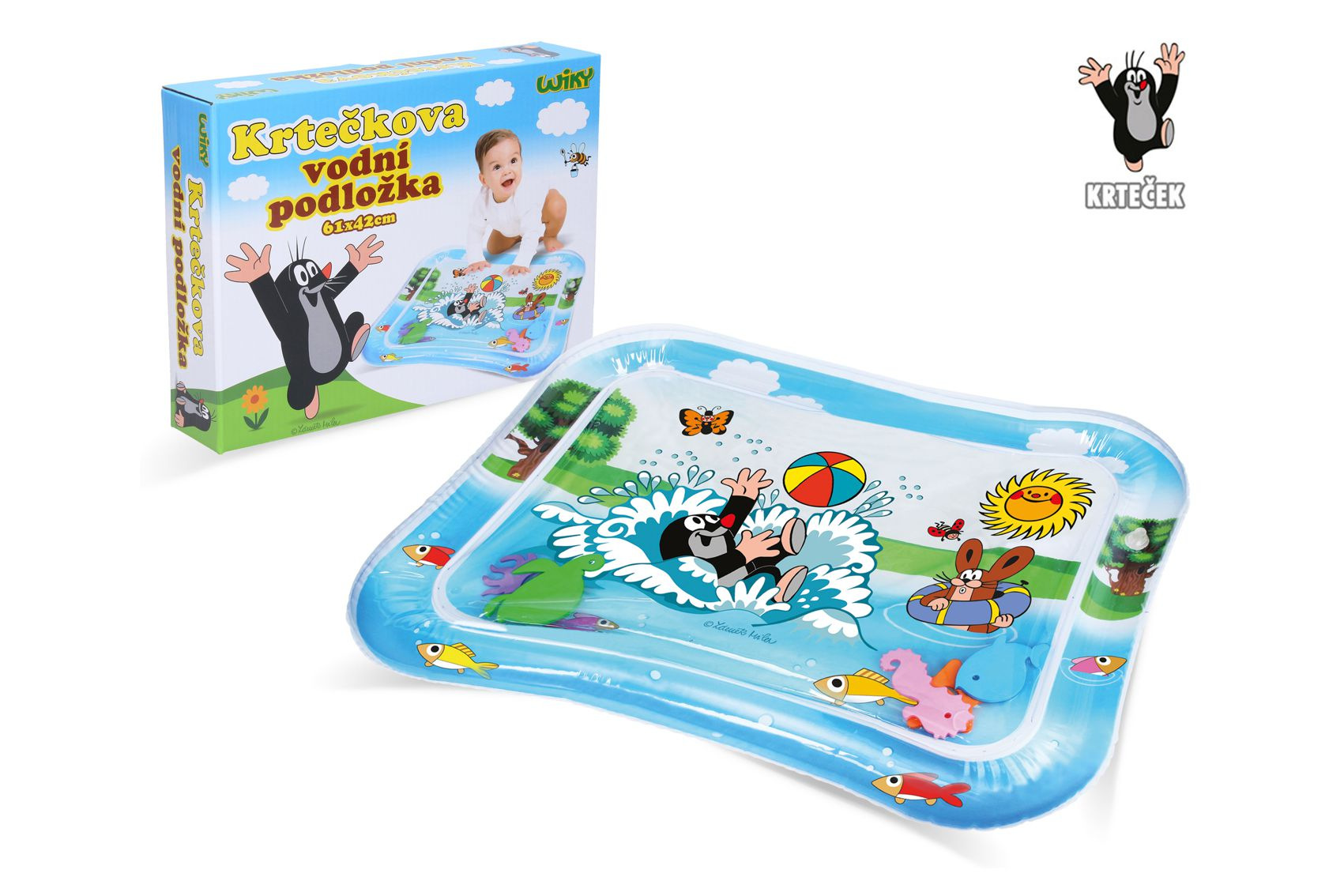Vodní podložka Krtek nafukovací 61x42 cm v krabici 25x20x5cm 6m+