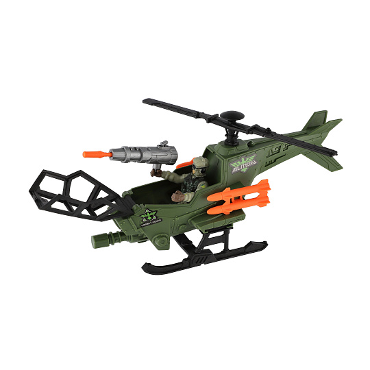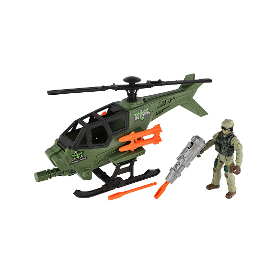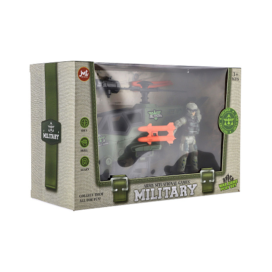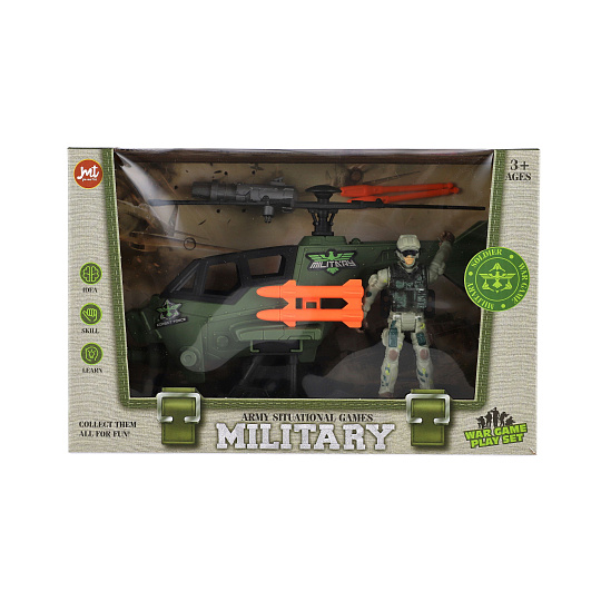Vojenská sada helikoptéra/vrtulník+voják s doplňky plast v krabici 27x18x12cm