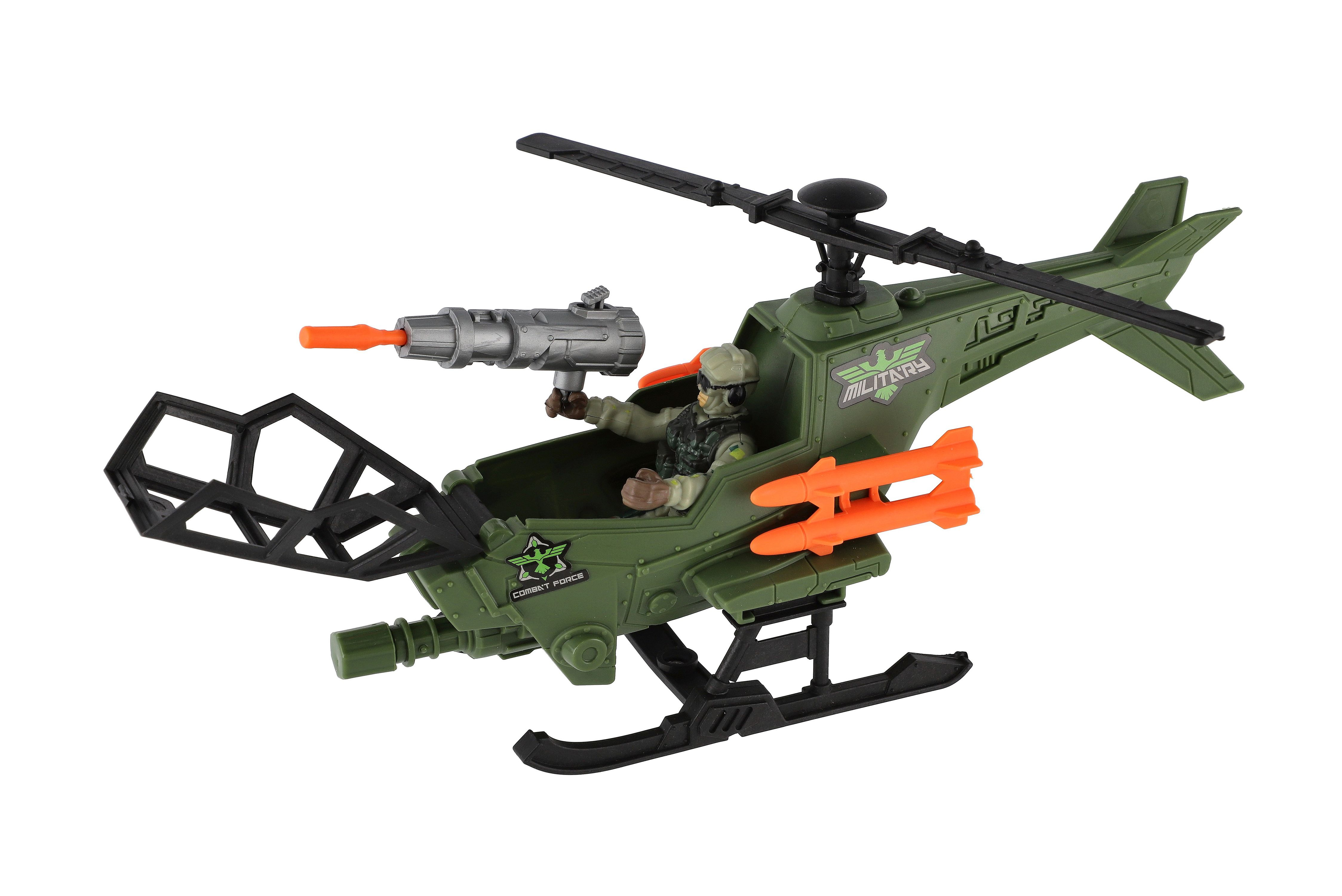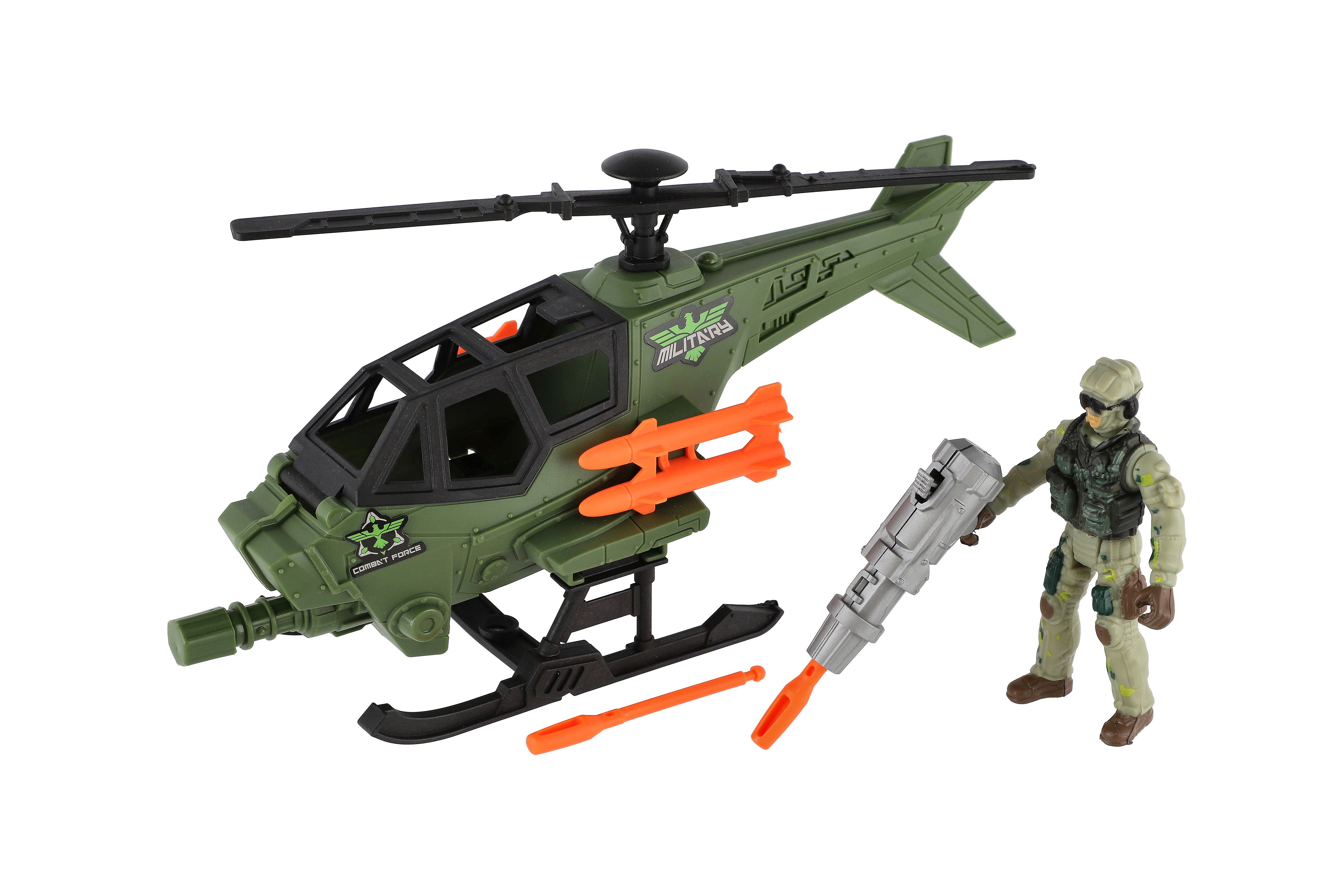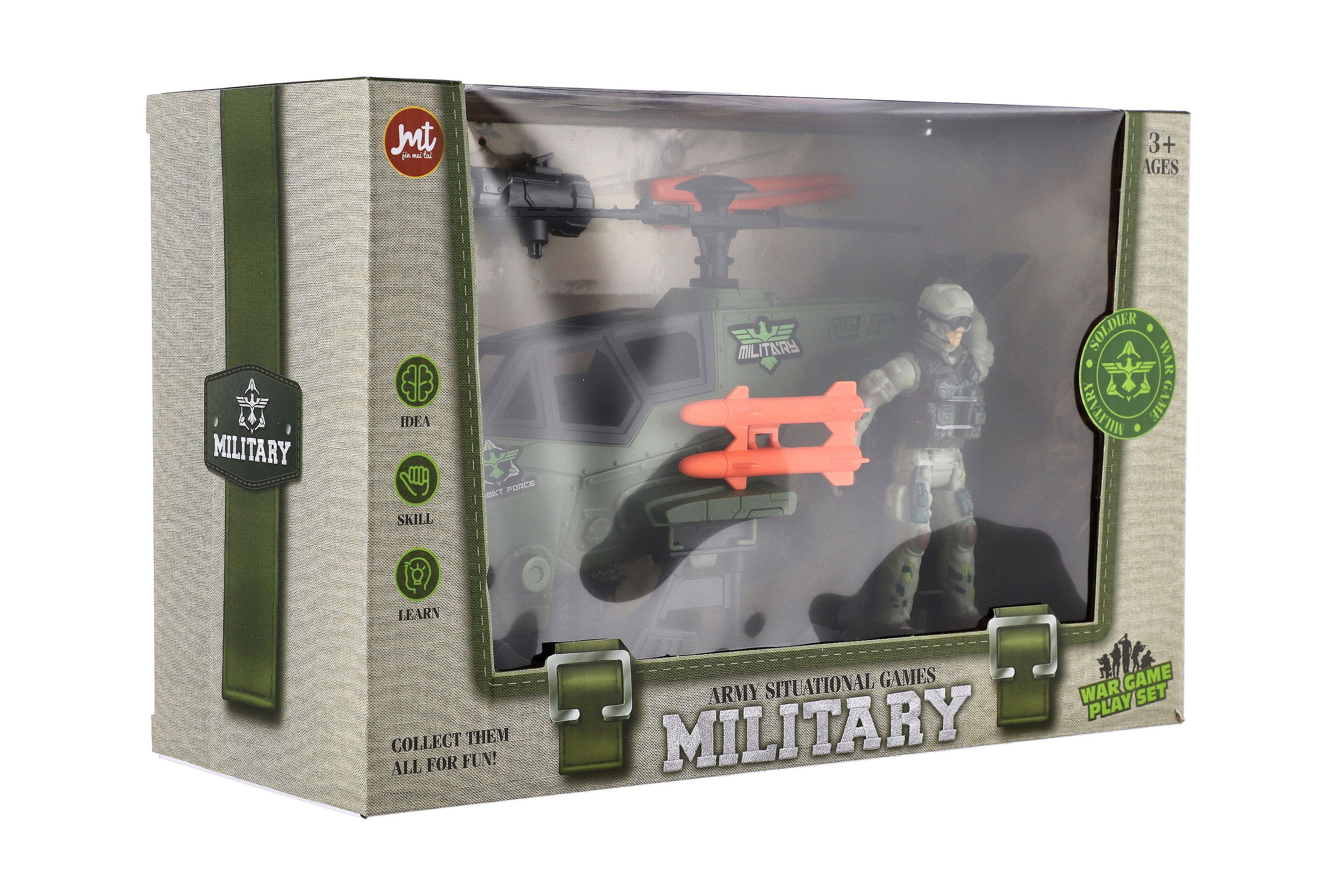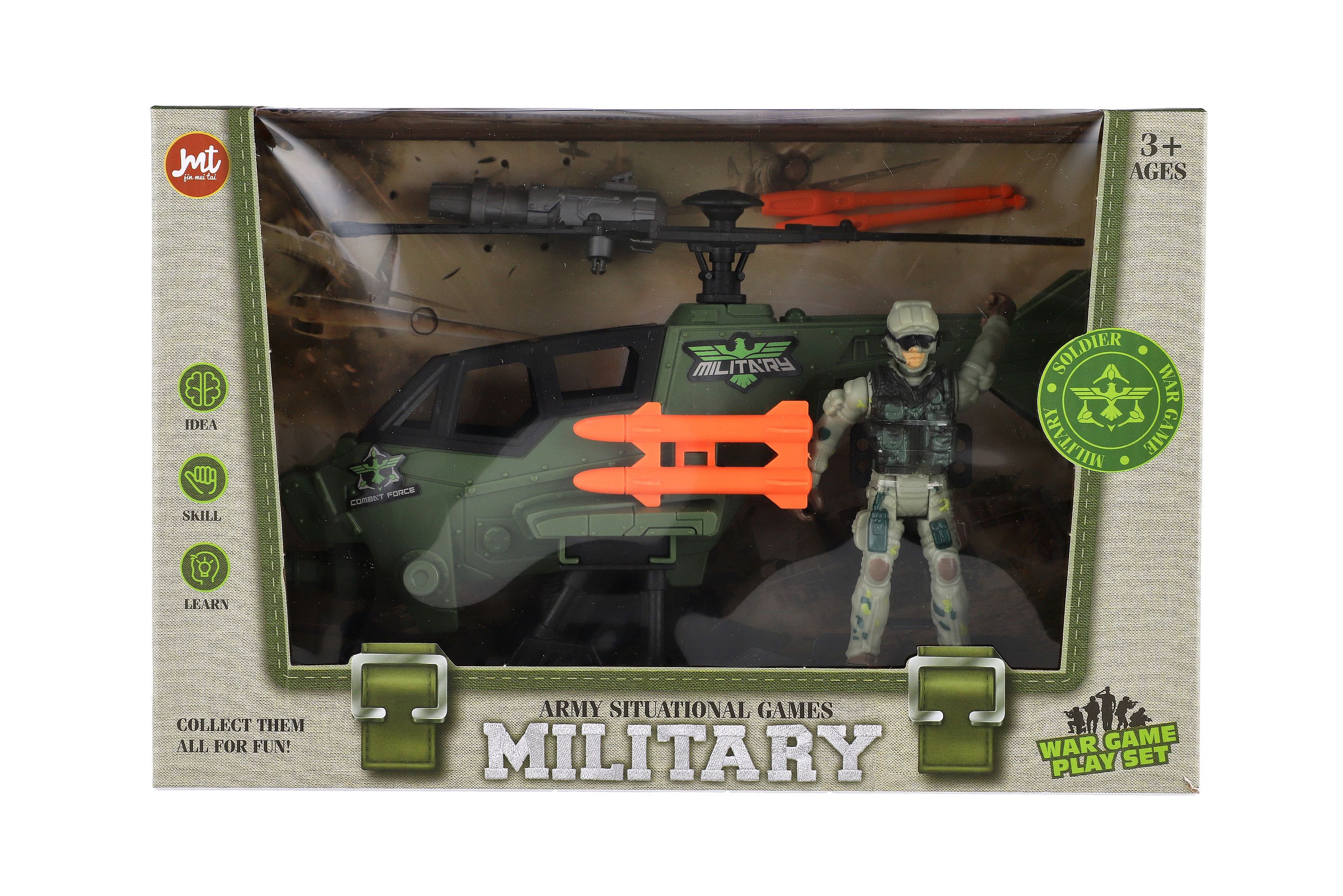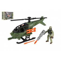 Vojenská sada helikoptéra/vrtulník+voják s doplňky plast v krabici 27x18x12cm