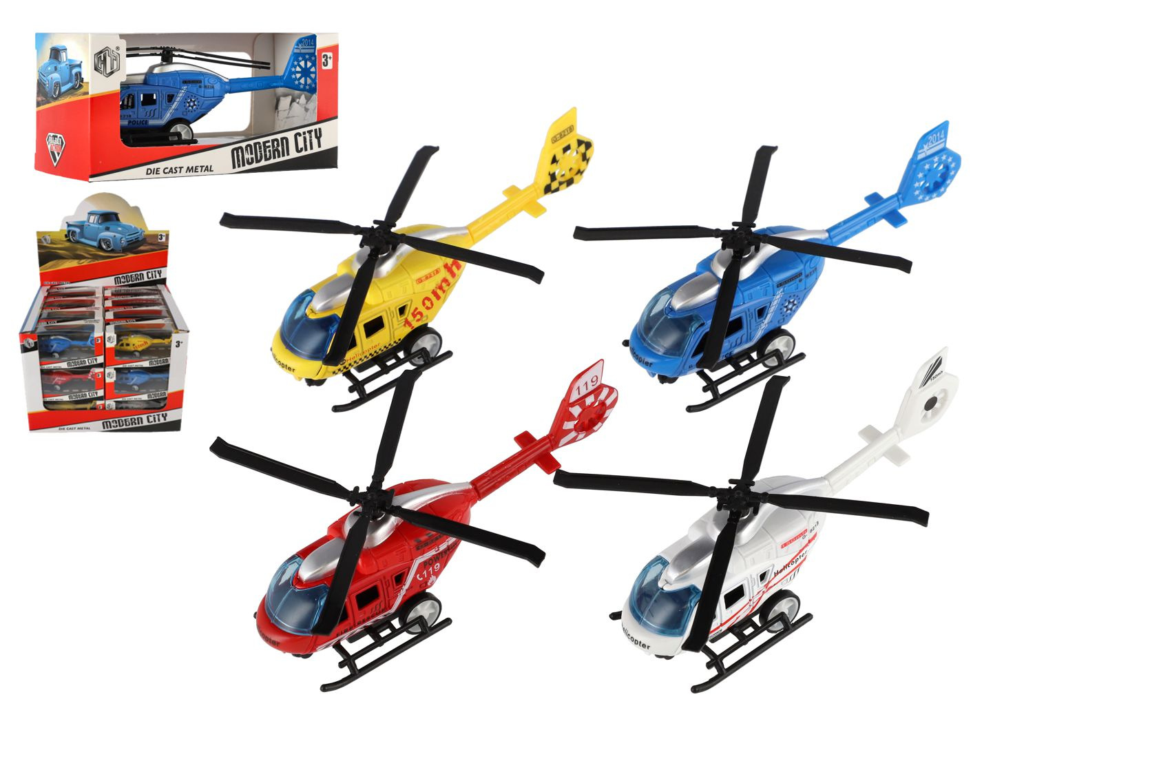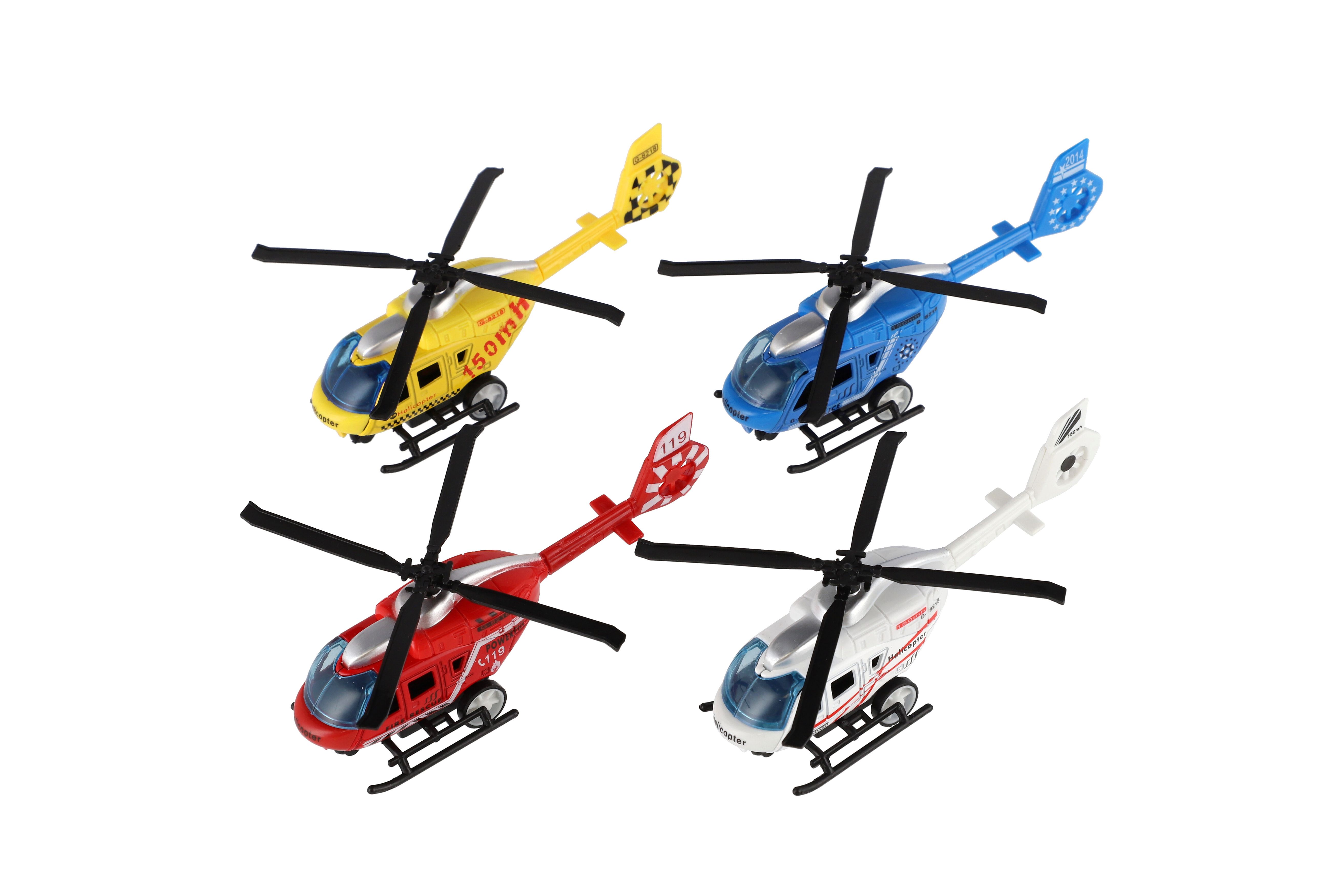 Teddies Vrtulník/Helikoptéra záchranných složek kov/plast 13cm na zpětné nat. 3 druhy
