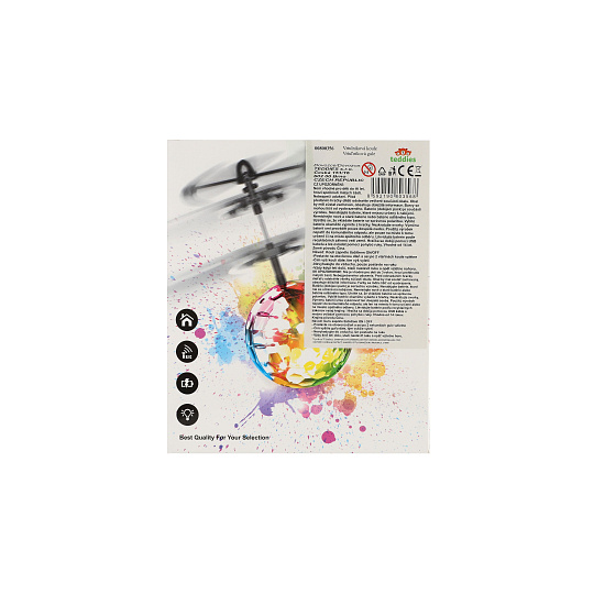 Vrtulníková koule se zabudovaným čidlem nabízí možnost ovládat její let pomocí dlaně. Děti mohou rukou určovat výšku letu. Za letu koule svítí. Nevyhazujte do vzduchu, pouze postavte na ruku. Balení obsahuje také USB kabel pro rychle dobíjení. Rozměry balení 16 x 19 x 6 cm. Vhodné pro děti od 14 let.