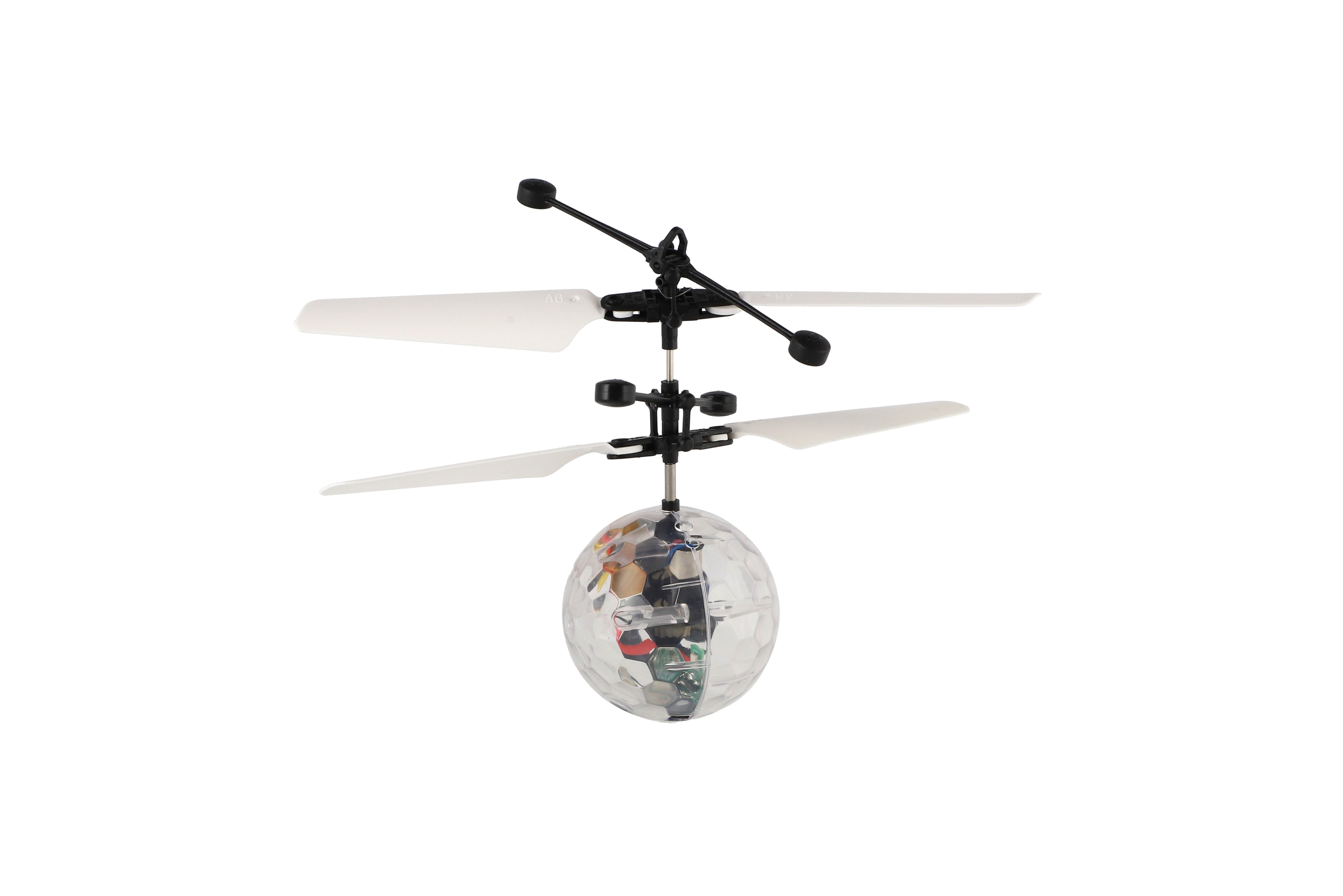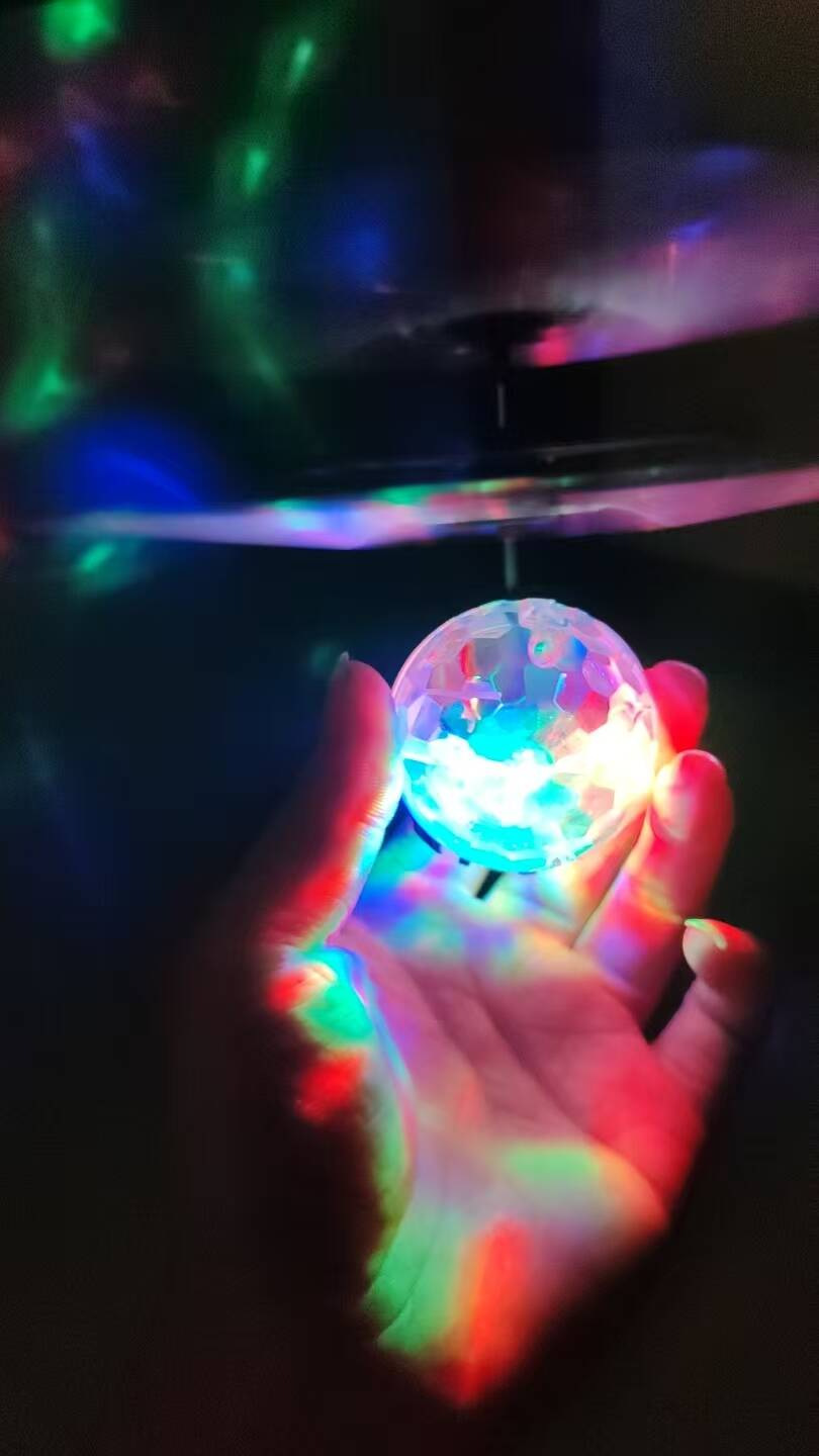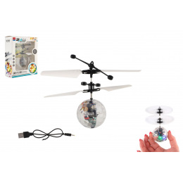 Vrtulníková koule létající plast 13x11cm svítící reagující na pohyb ruky,USB kabelem průhled v krab.