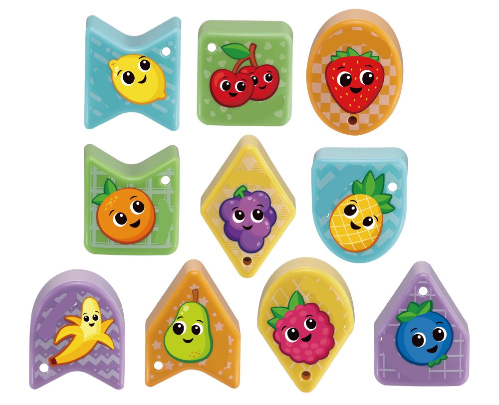 Stiskem stopky se vytváří další, nové tvary. Vkládání tvarů do otvorů rozvíjí koordinaci ruka-oko, prostorové vnímání, logické myšlení, objevování a jemné motorické dovednosti.