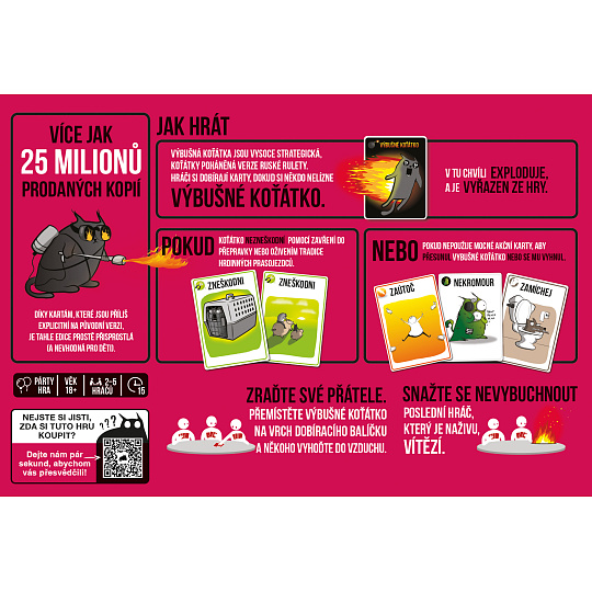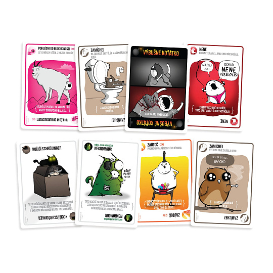 Přidáním dalšího herního balíčku (z klasické verze Výbušných koťátek anebo další přisprostlé verze) navýšíte počet hráčů až na 9.