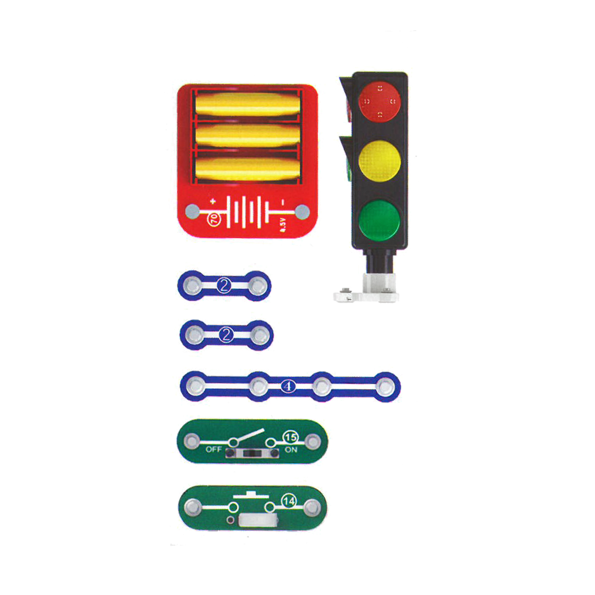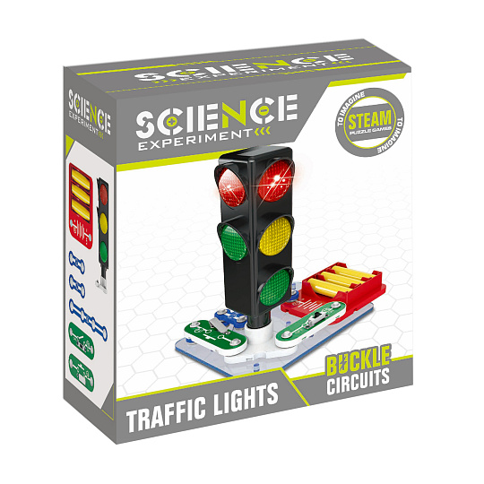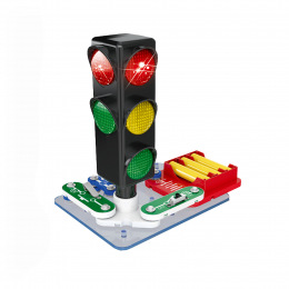 Funkční semafor, který si úplně sám sestavíš! Veškeré potřebné komponenty s kontakty na zapojení najdeš uvnitř balení. Pro spuštění je nutné použít 3 ks baterií typu AA, které nejsou součástí balení.