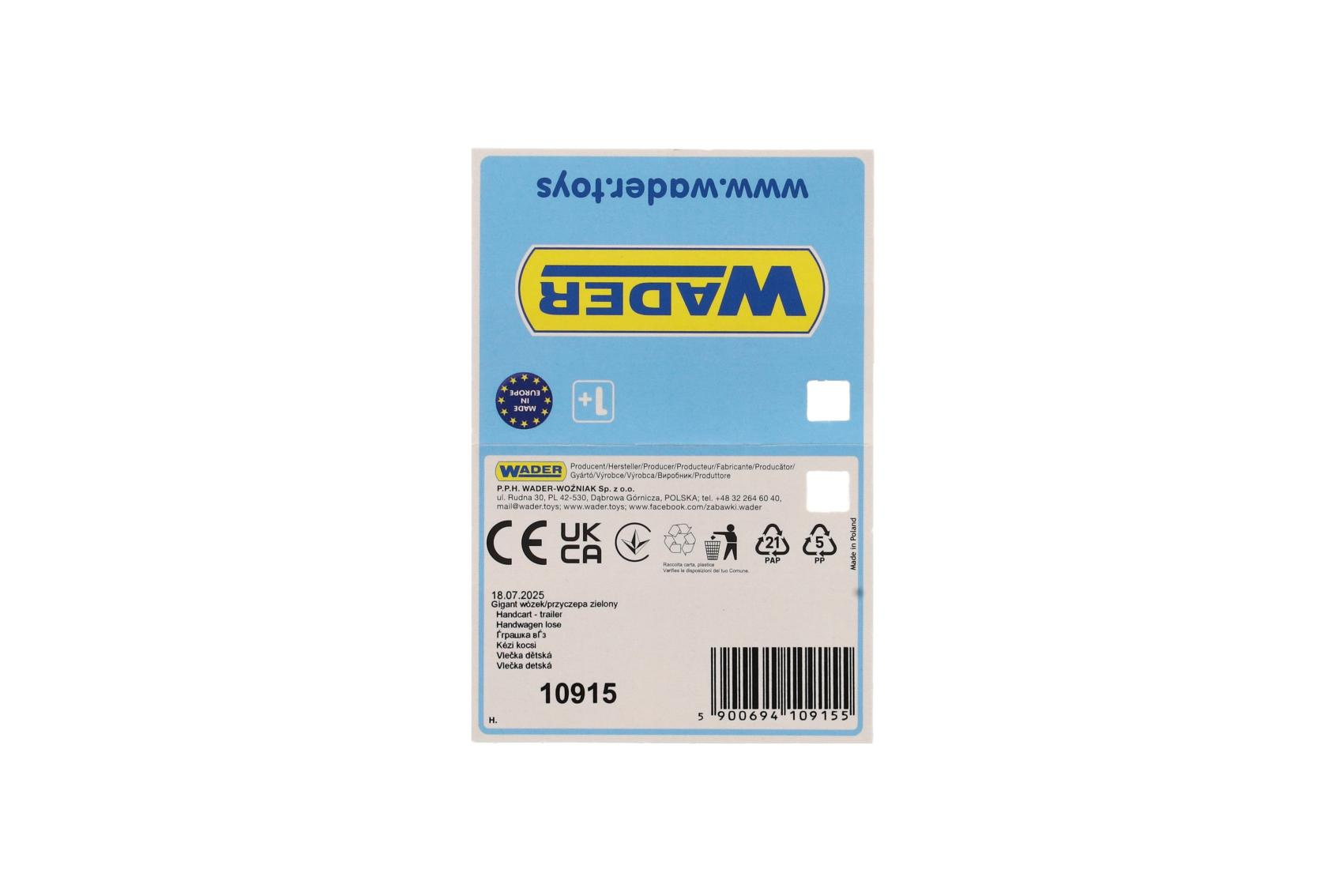 Dětská vlečka Wader v barevném provedení červeno-zelená je pěkná hračka pro kluky. Robustní vozík s nosností až 60kg bude ideálním pomocníkem na pískovišti i při pomoci rodičům na zahradě. Vozík uveze i menší dítě a to už bude opravdu velká zábava. Vhodné od 12 měsíců.