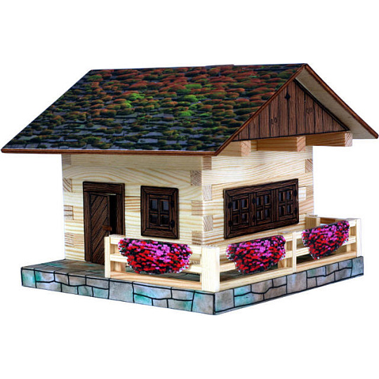 Dřevěná slepovací stavebnice Walachia - Roubená chaloupka. Slepovací stavebnice Walachia jsou dřevěné modely domečků a staveb z Valašského kraje v měřítku 1:32. Základem jsou dřevěné hranolky 9x9 mm a k tomu jsou v sadě vždy všechny papírové doplňky - okna, dveře, střešní části atd. Pro lepení se používá lepidlo Herkules, není však součástí stavebnice. Přiložený je montážní návod a malé kapitoly z historie lidové architektury. Níže je označení obtížnosti číslem 1 - 5, přičemž 1 je nejlehčí. Rozměry: 15 x 10 x 12 cm Počet dílů stavebnice: 64 Obtížnost: 2