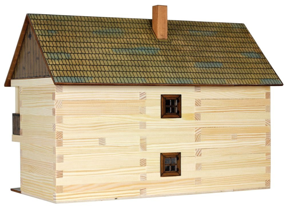 Dřevěná slepovací stavebnice Walachia - Roubená chaloupka. Slepovací stavebnice Walachia jsou dřevěné modely domečků a staveb z Valašského kraje v měřítku 1:32. Základem jsou dřevěné hranolky 9x9 mm a k tomu jsou v sadě vždy všechny papírové doplňky - okna, dveře, střešní části atd. Pro lepení se používá lepidlo Herkules, není však součástí stavebnice. Přiložený je montážní návod a malé kapitoly z historie lidové architektury. Níže je označení obtížnosti číslem 1 - 5, přičemž 1 je nejlehčí. Rozměry: 15 x 10 x 12 cm Počet dílů stavebnice: 64 Obtížnost: 2