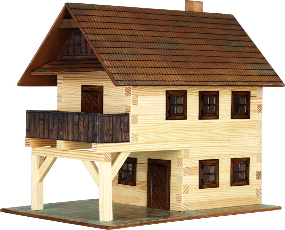 Dřevěná slepovací stavebnice Walachia - Roubená chalupa. Slepovací stavebnice Walachia jsou dřevěné modely domečků a staveb z Valašského kraje v měřítku 1:32. Základem jsou dřevěné hranolky 9x9 mm a k tomu jsou v sadě vždy všechny papírové doplňky - okna, dveře, střešní části atd. Pro lepení se používá lepidlo Herkules, není však součástí stavebnice. Přiložený je montážní návod a malé kapitoly z historie lidové architektury.Níže je označení obtížnosti číslem 1 - 5, přičemž 1 je nejlehčí. Rozměry: 22 x 15 x 15 cm Počet dílů: 100 Obtížnost: 2