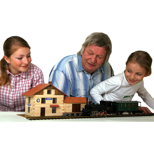 Dřevěná slepovací stasvebnice ve které je vše potřebné k sestavení včetně návodu. Ke slepení se používá lepidlo na dřevo a papír. Není součástí balení.