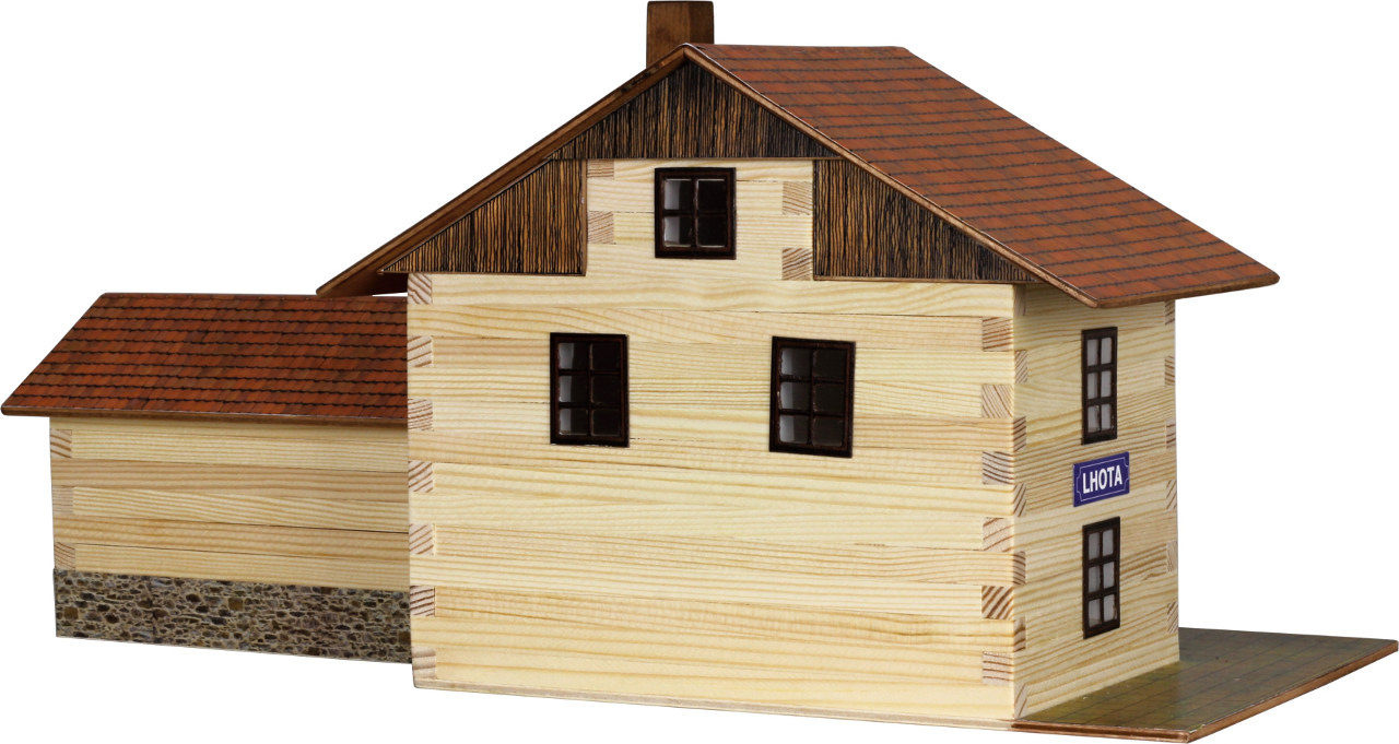 Dřevěná slepovací stavebnice Walachia - Letohrad. Slepovací stavebnice Walachia jsou dřevěné modely domečků a staveb z Valašského kraje v měřítku 1:32. Základem jsou dřevěné hranolky 9x9 mm a k tomu jsou v sadě vždy všechny papírové doplňky - okna, dveře, střešní části atd. Pro lepení se používá lepidlo Herkules, není však součástí stavebnice. Přiložený je montážní návod a malé kapitoly z historie lidové architektury. Návod pro stavebnici Walachia najdete i zde: Letohrad. Níže je označení obtížnosti číslem 1 - 5, přičemž 1 je nejlehčí.Rozměry: 19 x 19 x 34 cm Počet dílů stavebnice: 296 Obtížnost: 2
