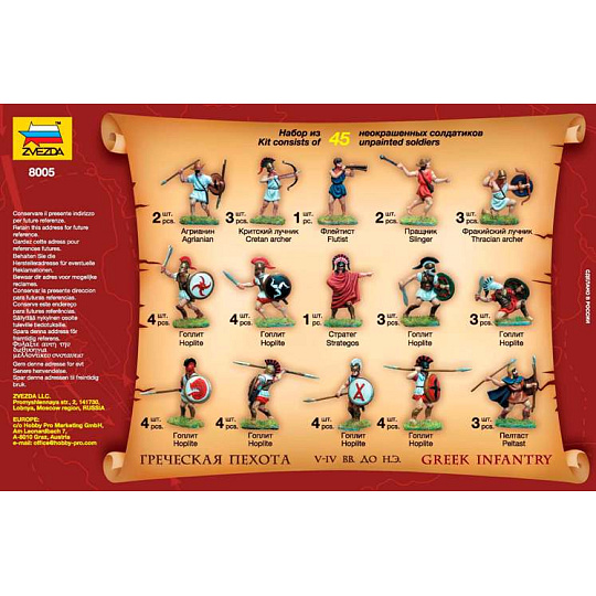 Zvezda Wargames (AoB) figurky 8005 - Greek Infantry V-IV B. C. (1:72)
