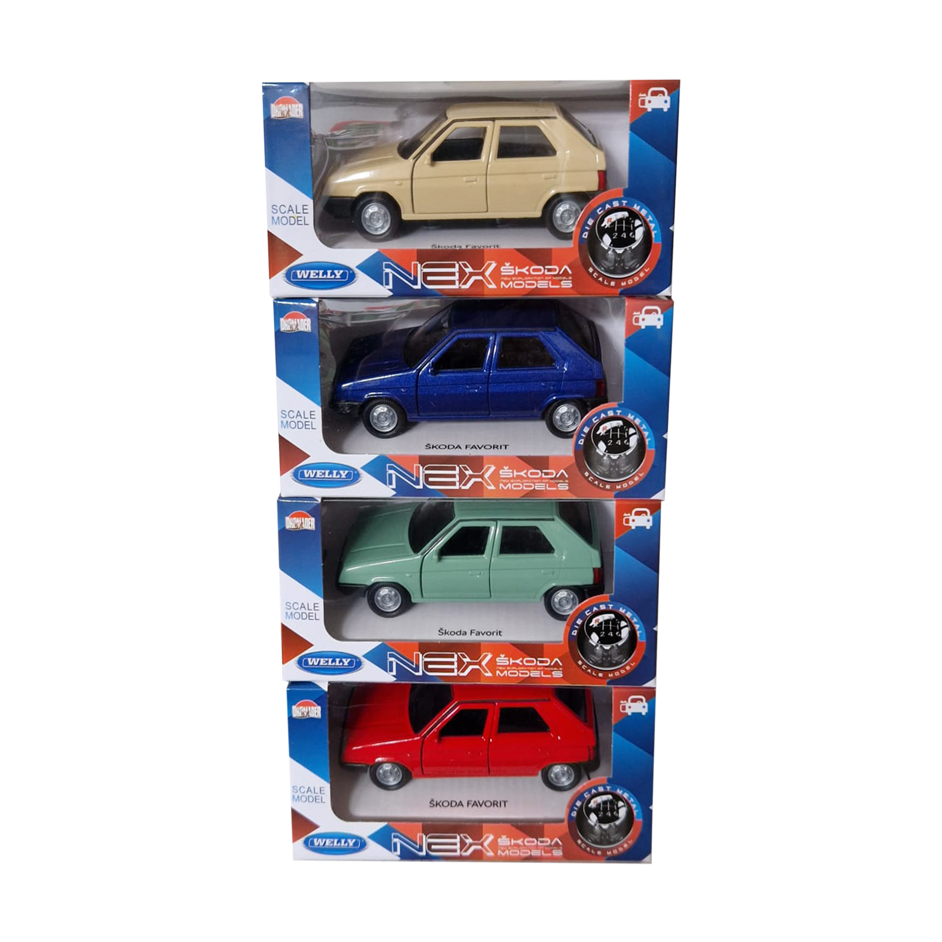 Welly NEX 1:34 Škoda Favorit. Kovovo-plastové modely o délce cca 110 mm, otevírací dveře, vozy automobilky ŠKODA.