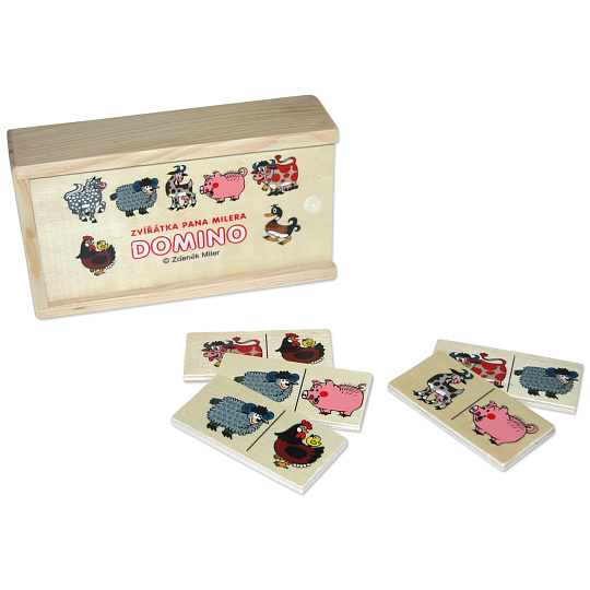 Wiky Domino zvířátka pana Müllera společenská hra dřevo 28ks v dřevěné krabičce 16x9x4cm