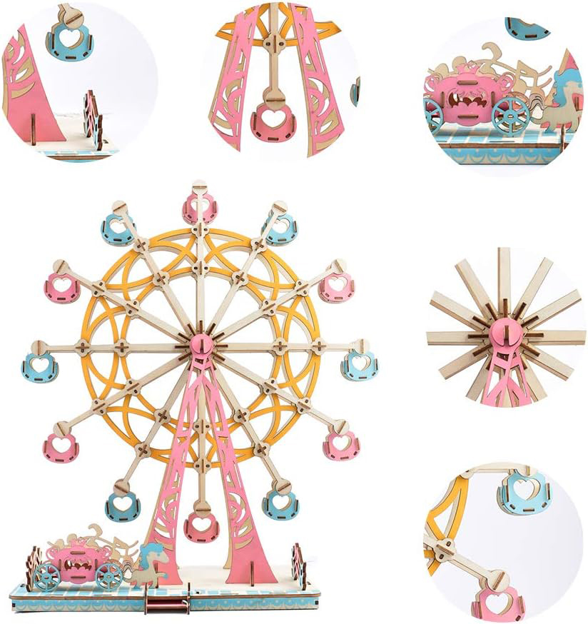Rappa Woodcraft Dřevěné 3D puzzle Ruské kolo pastelové