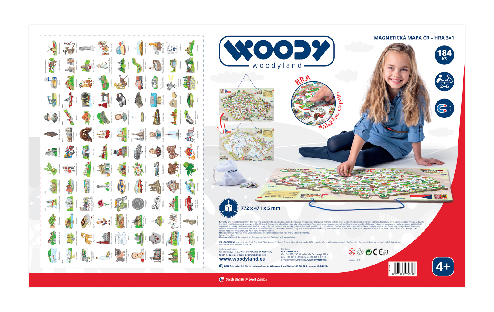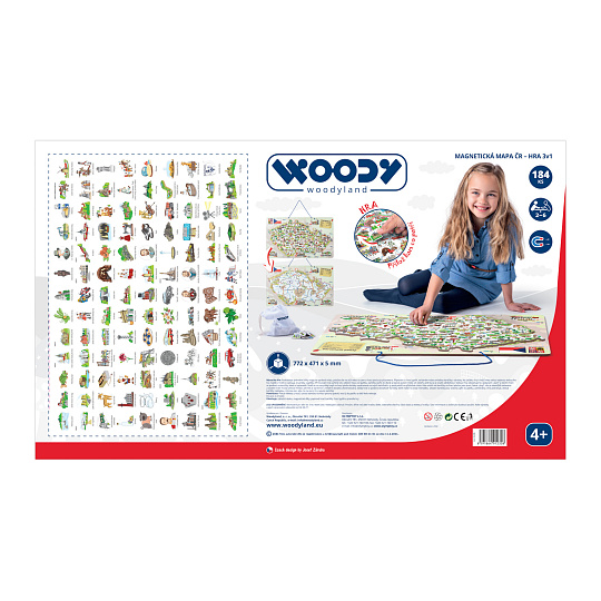 Woody 91230 Magnetická mapa ČR s obrázky a společenská hra, 3 v 1