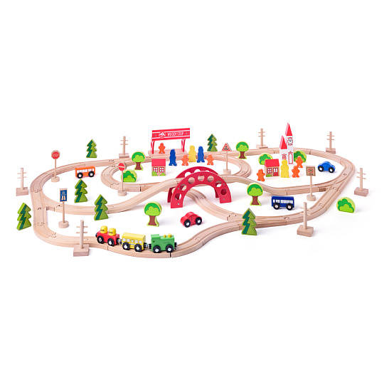 Vláčkodráha s příslušenstvím navrženým českým designérem obsahuje 90 dílů. Dráhu lze postavit pokaždé jinak a jednotlivé díly je možné kombinovat i s ostatními vláčkodráhami dostupnými na našem trhu.