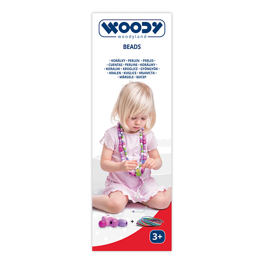 Woody dřevěné navlékací korálky v tubě - růžová