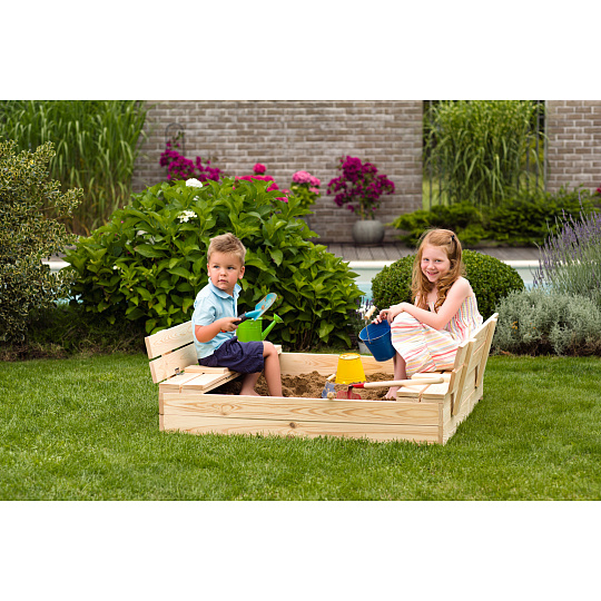 Woody Pískoviště dřevěné s krytem, se 2 lavicemi, natur