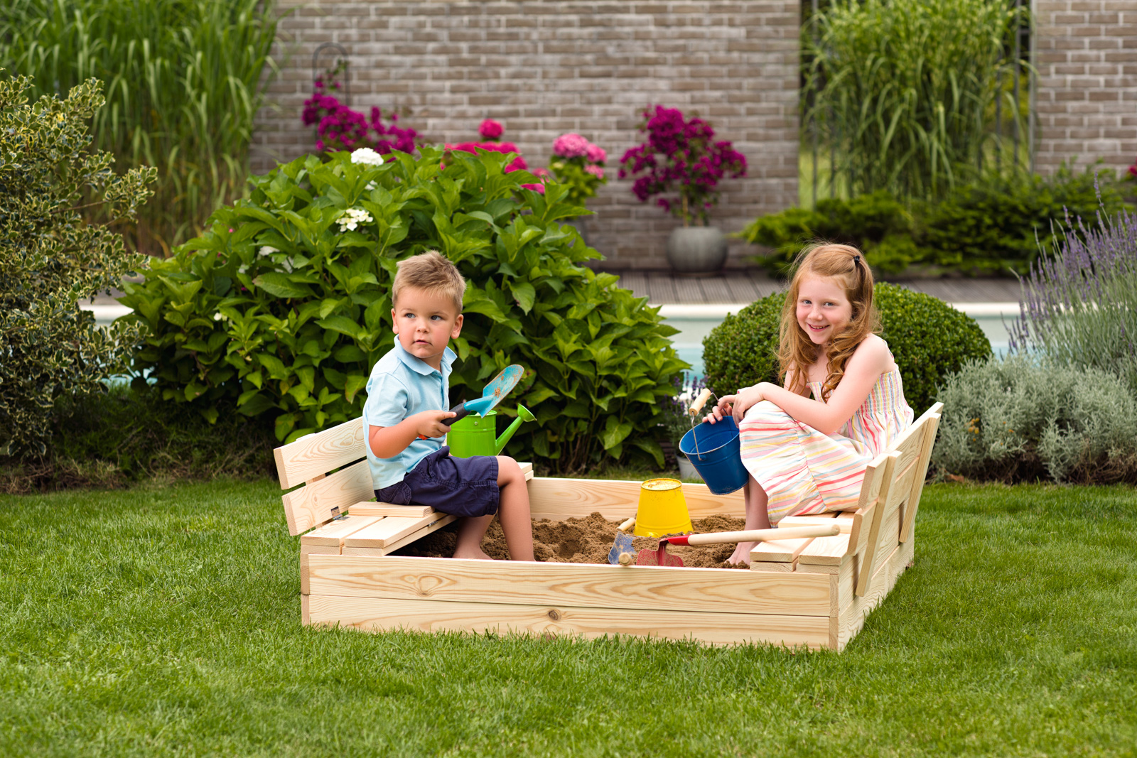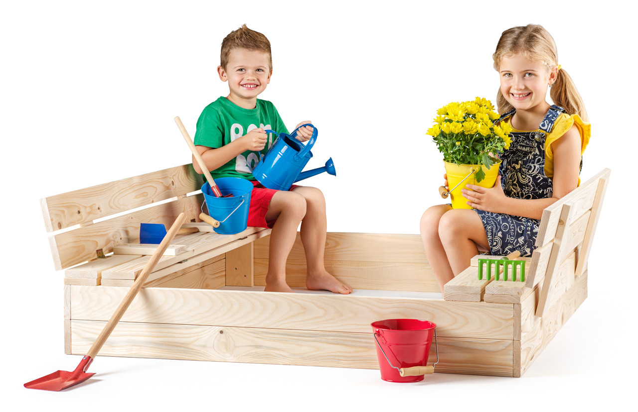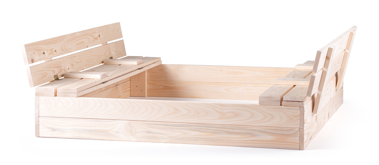 Pískoviště z masivního dřeva je vybaveno víkem, které chrání písek před zvířaty, spadaným listím a jinými nečistotami v době, kdy si v něm děti nehrají. Pokud si děti na pískovišti zrovna hrají, je víko otevřeno a promění se v lavičky, které umožní pohodlné sezení při hře.| Rozměr: 120 x 113 x 19 cm | Rozměr rozložená výška s lavičkou: 120 x 113 x 39 cm / Věk: 3+ ... více