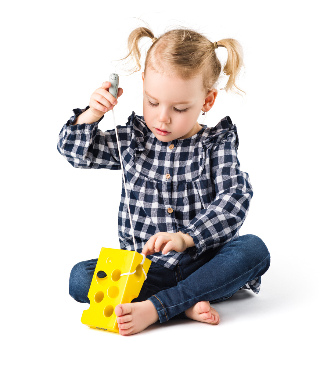 Motorická hra pro nejmenší . Dítě provléká myšku uchycenou na šňůrce děravým sýrem a tím cíleně cvičí jemnou motoriku. | Věk: 3+| Rozměr: 13,5 x 8,5 x 5 cm... více