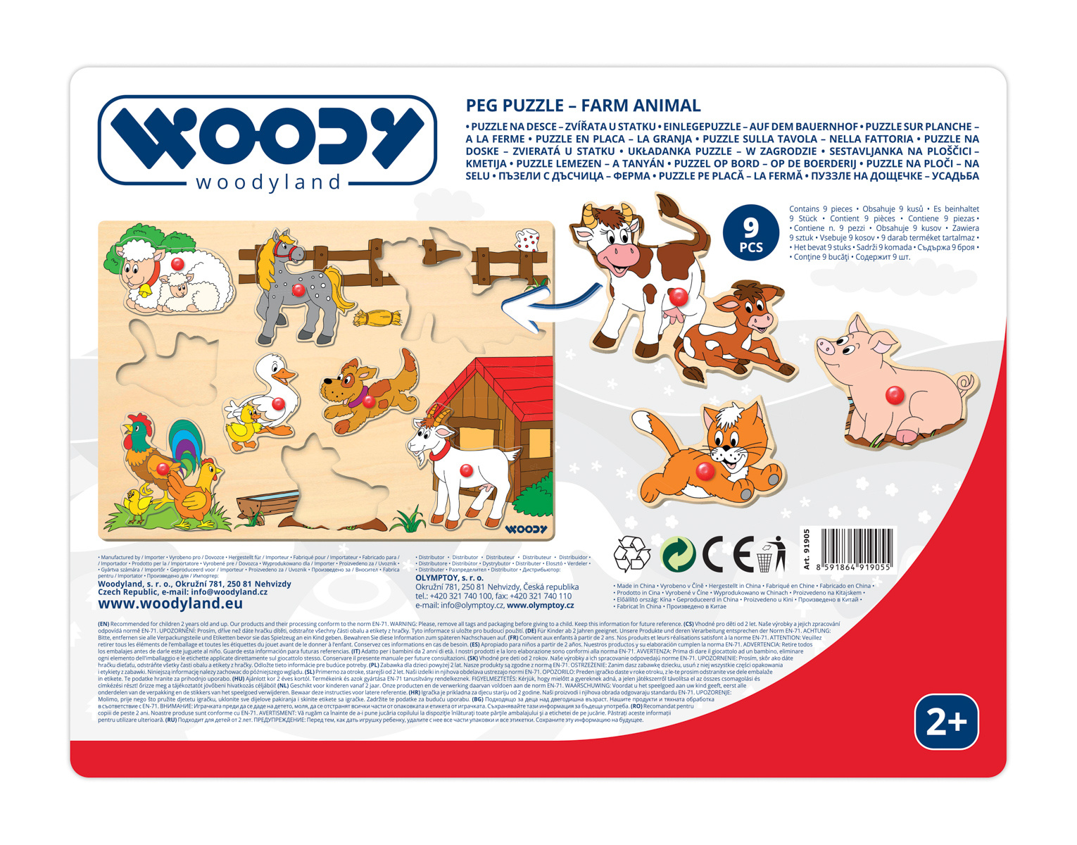 Woody Puzzle na desce - zvířata u statku