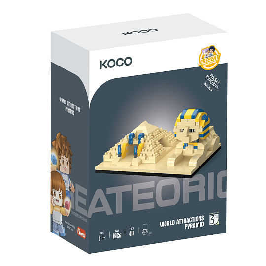 Stavebnice KOCO, to jsou velké příběhy v malých detailech. Sestavte si krásný model pyramidy. Skvělý tip pro procvičení jemné motoriky rukou. Balení obsahuje podrobný obrázkový návod. Počet dílků: 410 ks Rozměry balení 13 x 17 x 7 cm. Vhodné pro děti od 6 let.