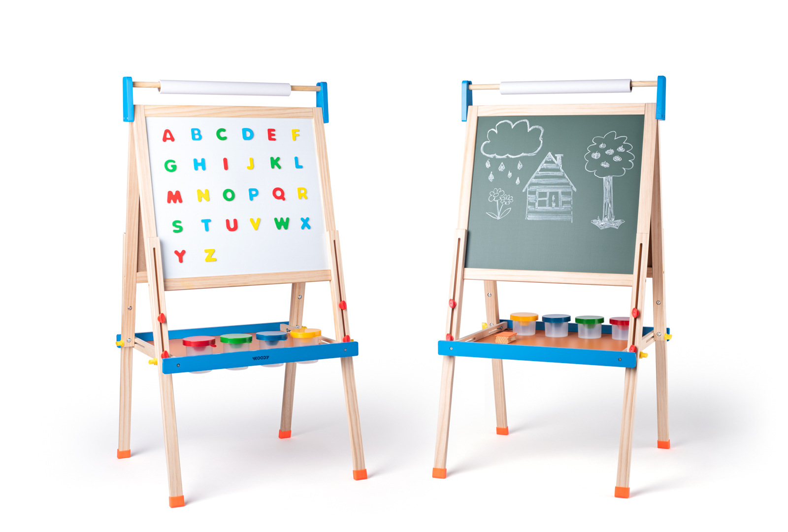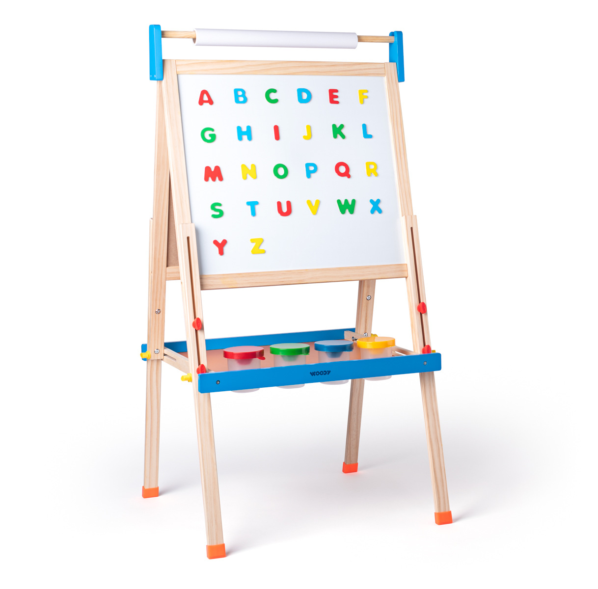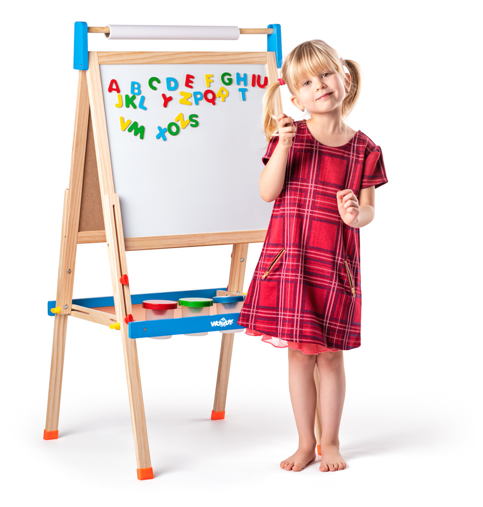 Woody Tabule "ABC" s písmeny, s rolí papíru a kelímky