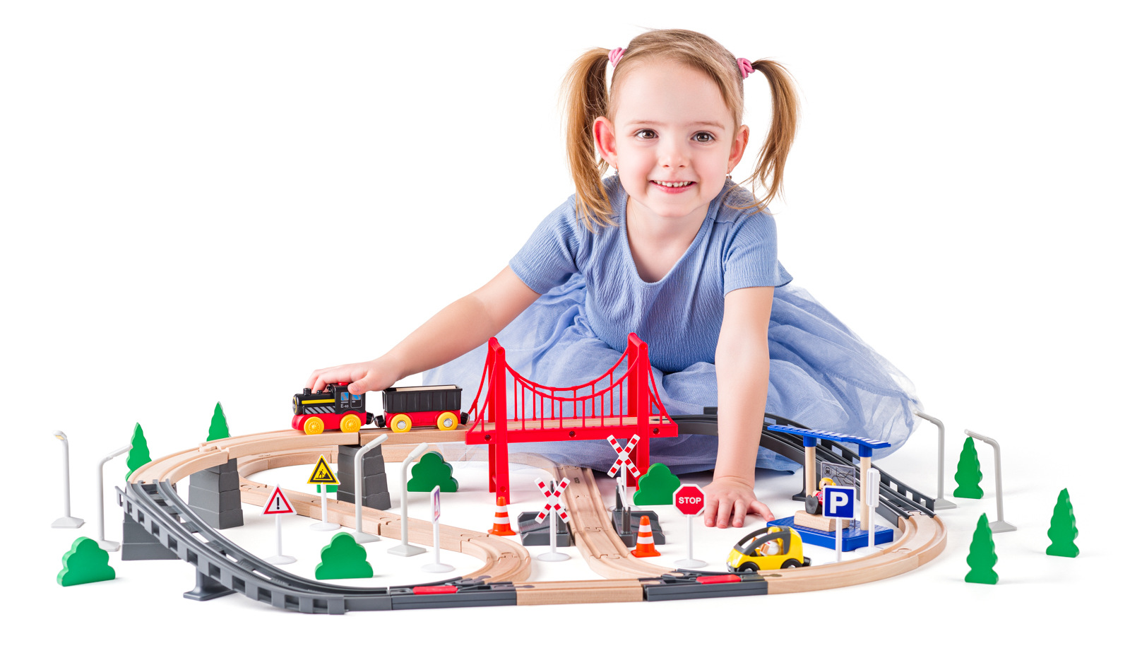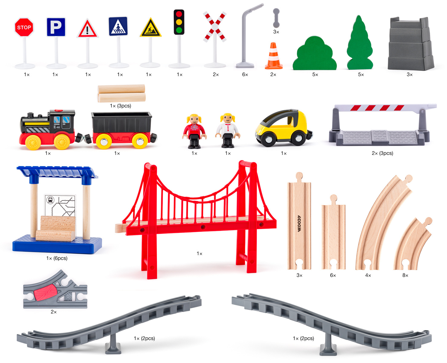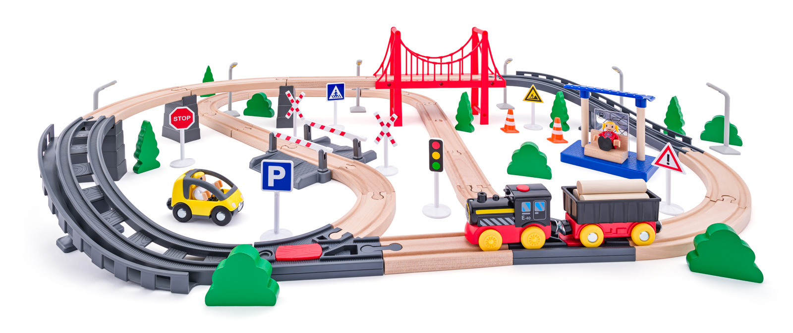 Woody Vláčkodráha s elektrickou mašinkou a mostem, 80 dílů