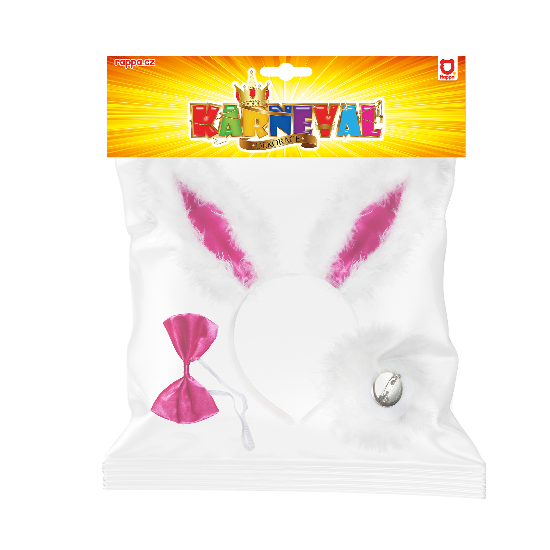 Exkluzivní karnevalová sada pro všechny zaječí holky! Set obsahuje zaječí uši na čelence, růžového motýlka na gumičku a připínací ocásek. Tyto super párty doplňky ti nesmí chybět!